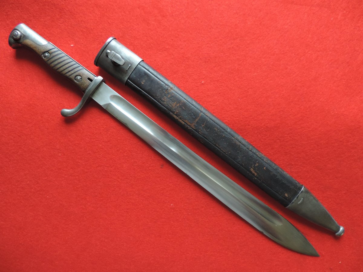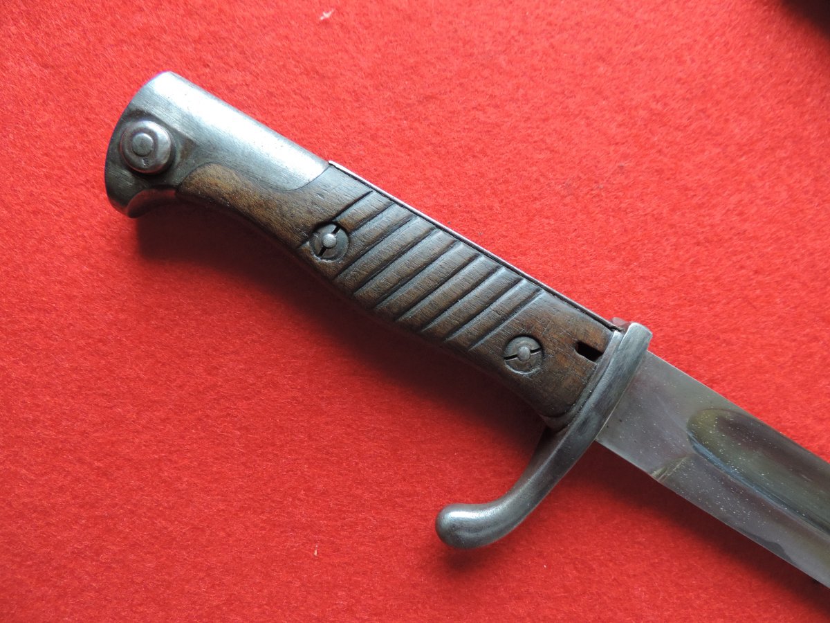 Доброго ВСЕМ времени суток. Прикупил недавно вот такой штык.Состояние не плохое,хотя то что "руки приложили" видно не вооружённым глазом. Возник вопрос-"родные" ли ножны или по другому,мог ли штык на 15-й год (n.A. ) быть в кожаных ножнах. В книге "Штыки мира" Вороновых,на стр 348 показан на 15-й в кож. ножнах но старого типа и с пилой. У Weitze в продаже есть на тот же год, но тоже старого типа (https://www.weitze.n...rt__251723.html) Мой же нового. Клейма приёмки,на всех деталях ножен и штыка, совпадают. Заранее спасибо за любые ответы.