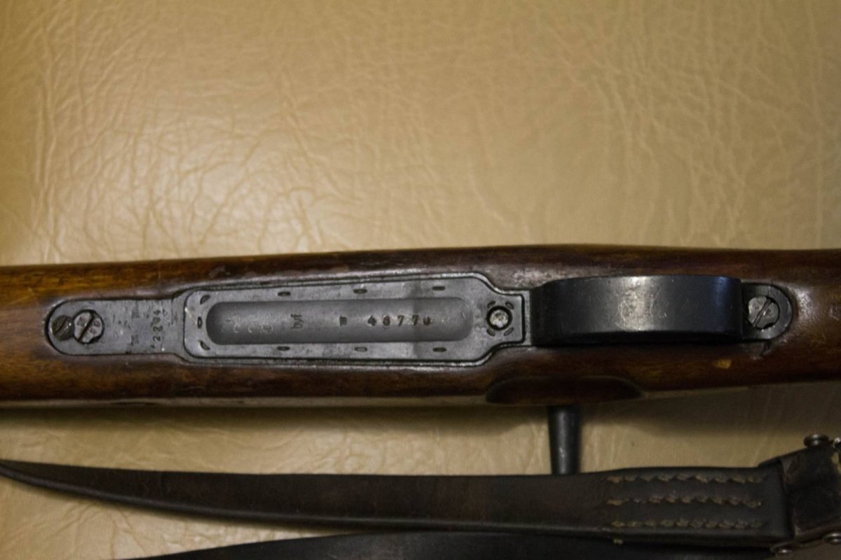 Или последние вздохи Рейха или уже послевоенная компоновка. Рама и ствол от модели 98b 1920-х г.г. укороченная в 98к и переданная в СС , крышка магазинной коробки штамповка от Кригсмодели 1944-1945г.г., магазинная коробка до 1930-х г.г., с отверстием под антабку, если меня зрение не подводит. Затвор поляк от Вз.29, дерево поздний рейхсвер 1935-1936г.г.