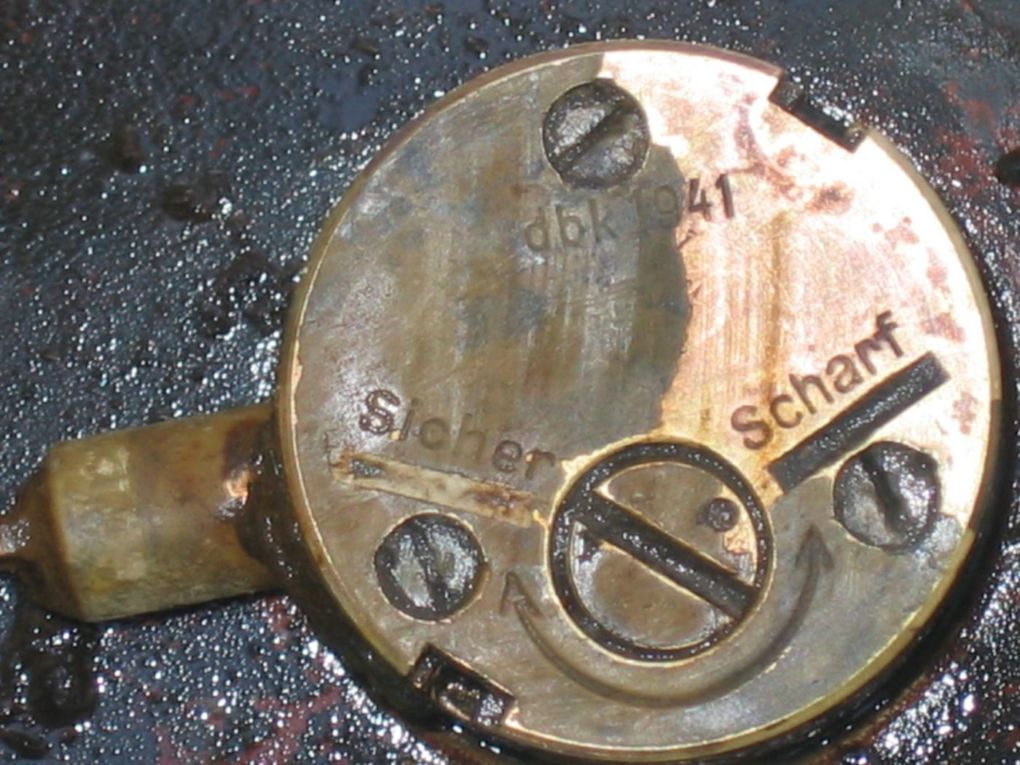 Ответ: а ВОПы прут. на взрывателе TMiZ35 постановка на боевой взвод производится путем поворота установочного диска шлицом с белой риски "безопасное"(SICHER) на красную риску "боевое"(SHARF). По поводу взрывателя вопрос: мина взводится именно совпадением направления шлица и риски или установкой точечной керненой метки напротив соответствующей риски? Если последнее правда, то мина на фото на боевом взводе. Если нет, то для чего нужна эта точка?