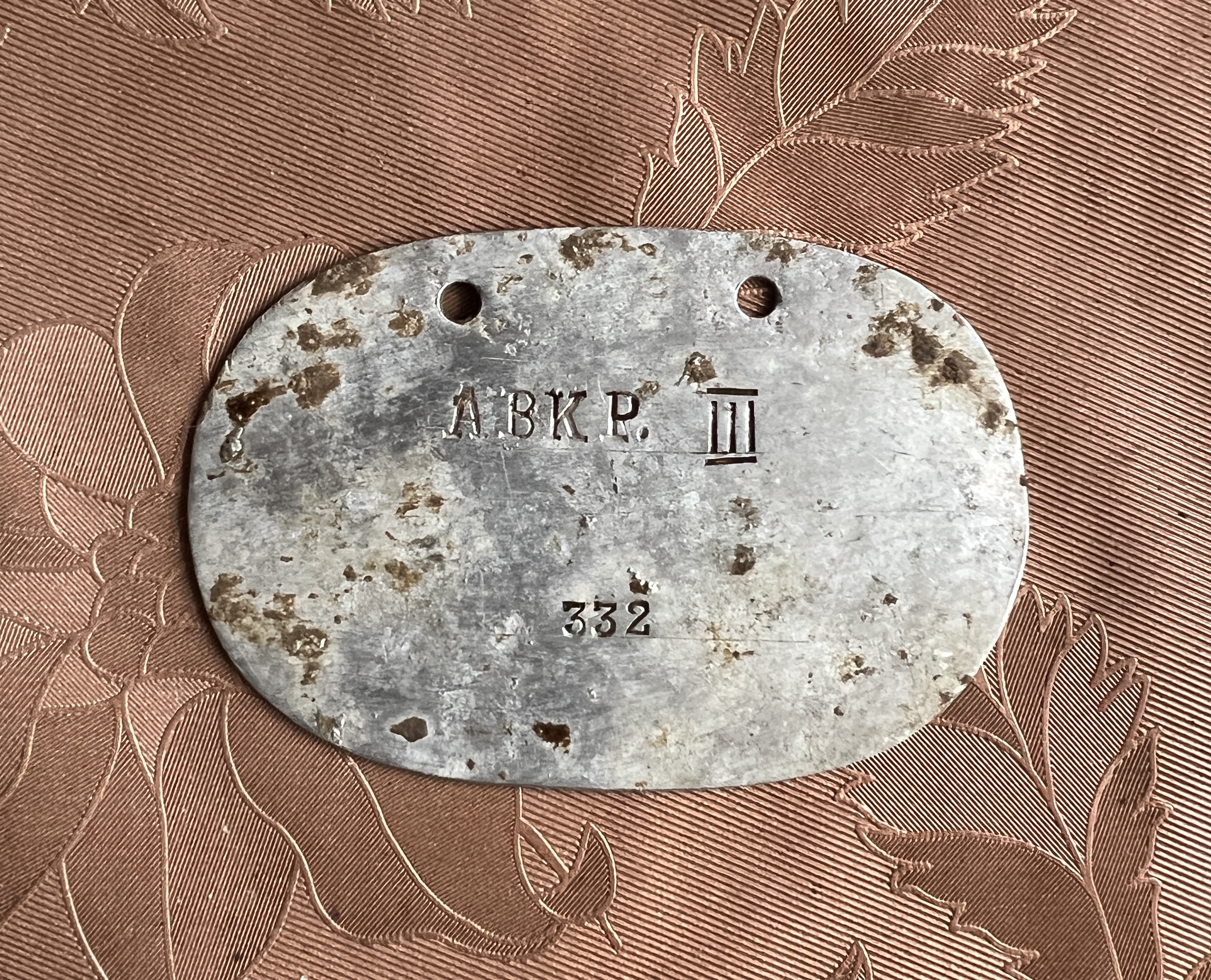 Доброго дня, Камрад! Ну и головоломка!!! Я склоняюсь, что это бирка имущество 3 роты условного AB - Artillerie Beobachtung - Артиллерийское наблюдение (разведка)??? Когда дивизию на эшелоне перебросивали на другой участк фронта, имущество подразделений маркирировали бирками, чтобы не было стопора при разгрузке. Как вариант. З повагою, Валдіс! Слава Україні!