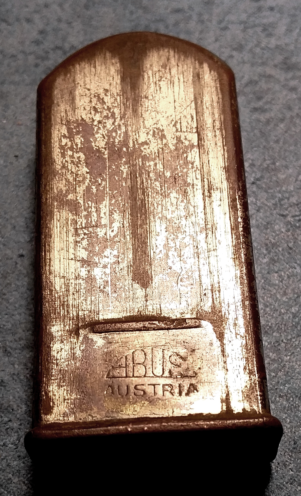 Вітаю камрадів.Фірма ABUS заснована в 1924 році і існує донині.Увесь час виробляла різні замки.Але що вони виробляли під час 2 СВ ніде ні слова.Виріб латунний нікільований,в середині щось схоже на вату.Може якийсь фільтр?