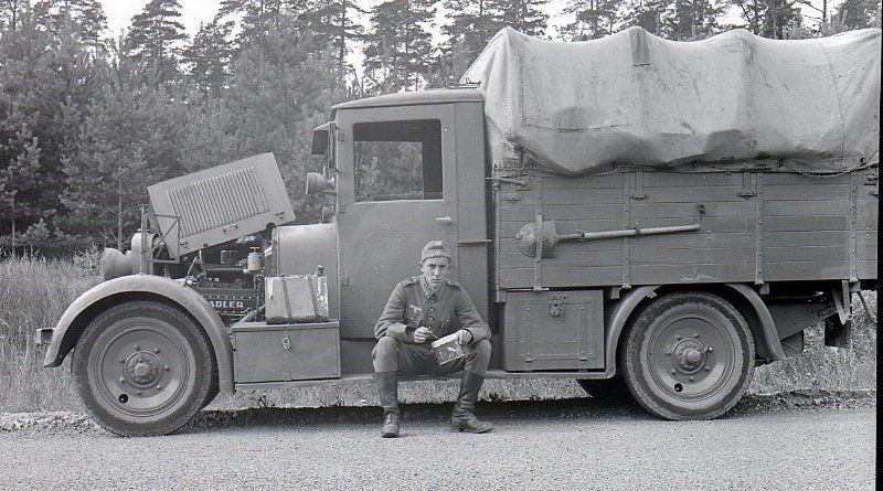 Немного слов о самой фирме.Её история начинается в 1880 году с выпуска велосипедов и пишущих машинок.Позднее «Адлер» развивает производство мотоциклов и автомобилей, и в 1957 году прекращает своё существование. 1.Adler Standard 6, 6A и 6S. Один из первых гражданских автомобилей, фирмы «Адлер», попавших на вооружение Вермахта и различных организаций Третьего Рейха.В 1927-34 годах было выпущено 20 849 машин. 2.Adler Favorit .Вероятнее всего,на снимке – модель 2U, выпущенная небольшим «тиражом» (274 машины) в 1933-34 годах.Модели Favorit 8J, 2S и 2A, более раннего выпуска (1929-33 годы) с опознавательными знаками Вермахта, можно увидеть здесь : http://www.kfzderwehrmacht.de/Homep...ermany/Adler/Adler_Favorit/adler_favorit.html 3.«Полицайваген» на базе Adler Standard 8. Снимок сделан в Кракове (Польша). Adler Trumpf .Под таким названием (Trumpf в переводе означает «козырь») «Адлер» выпускал три модели : 4,5.Trumpf 1.5-Liter AV выпускался в 1932-1936 годах.Всего изготовлено 18 600 автомобилей.От следующей модели 1,5-литровый седан отличался угловатыми очертаниями кузова, а у кабриолета на лобовом стекле был только один дворник. 6-10.Trumpf Junior 1G/ 1E.Самая массовая модель фирмы «Адлер».В 1934-1941 годах было выпущено 102 840 машин.Рекордное количество по меркам того времени.4-х цилиндровый 25-ти сильный двигатель и 4-х скоростная кпп позволяли развивать мах.скорость 90 км/ч.