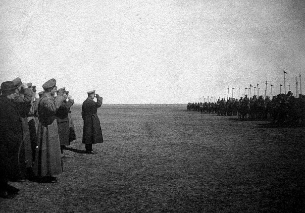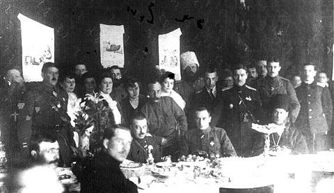 А.В.Колчак и А.В.Тимирева (сидят), генерал Альфред Нокс (стоит сзади Колчака) с группой английских офицеров в районе Омска
