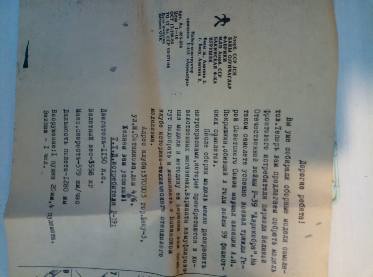 Нашёл в магазине залежи древних моделей. В коробке оказалась "Аэрокобра". Всего около 5 наименований. Качество наиотвратительнейшее. Хотя цена соответствует - 2 маната (чуть больше доллара).