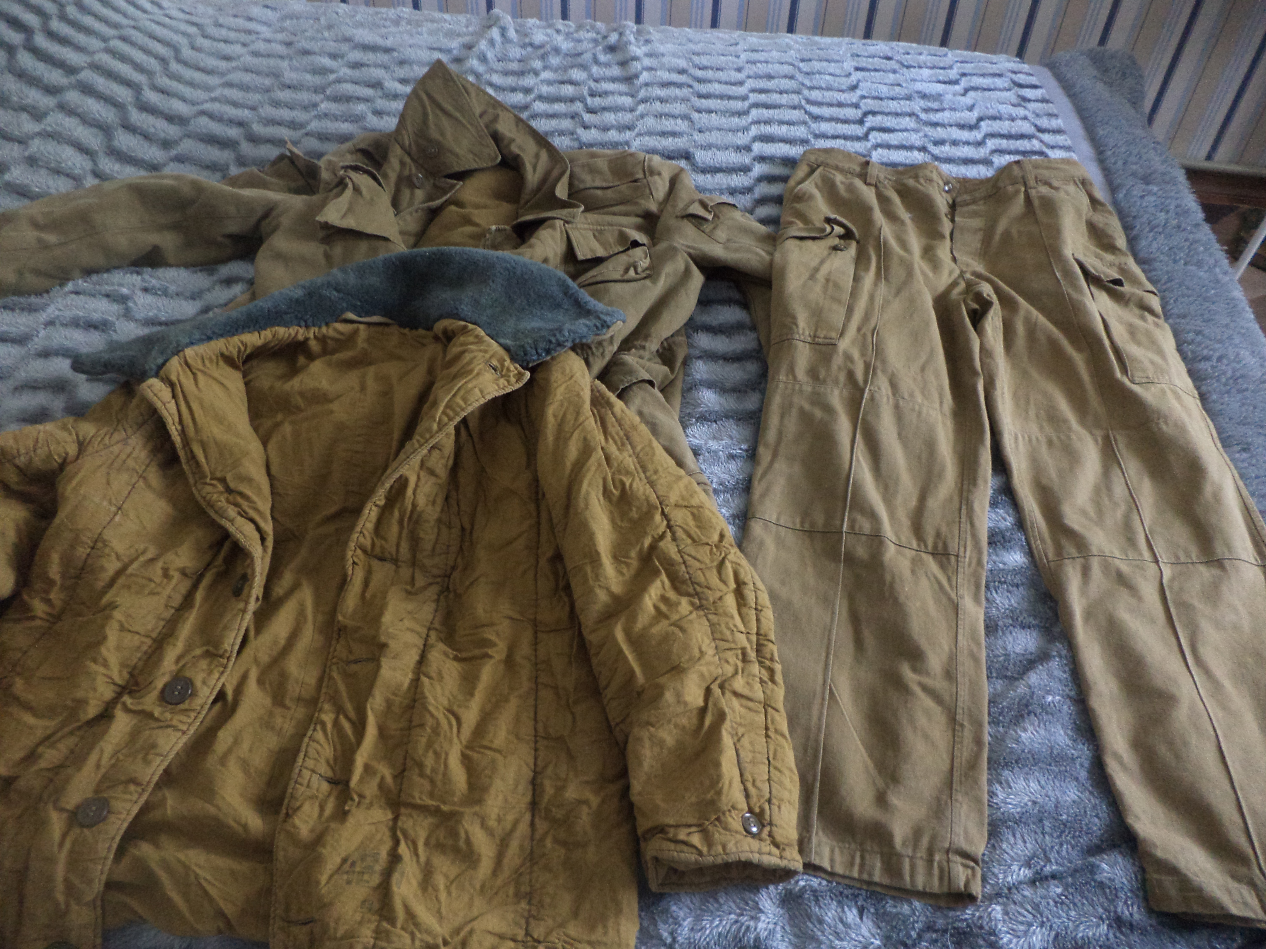 Состояние б/у, нюансы, на фото, указал. Куртка - зима, штаны - лето. Хотя, если честно, в свое время, зимние штаны, ни разу не надевал, ходил в летних. На штанах клеймо не просматривается. 1200 и пересыл..