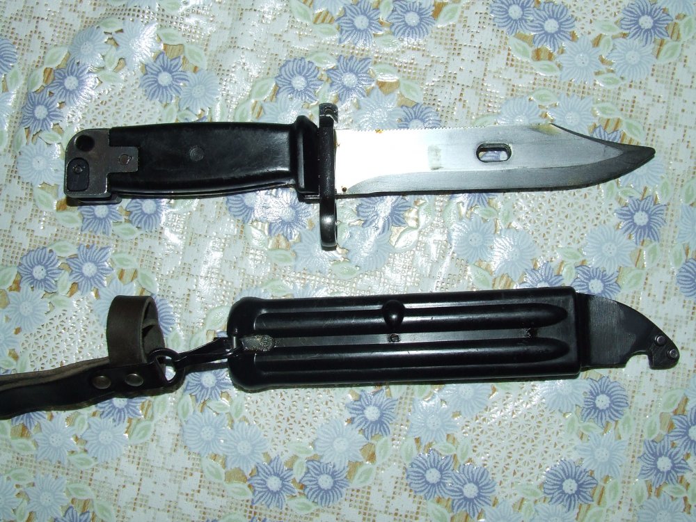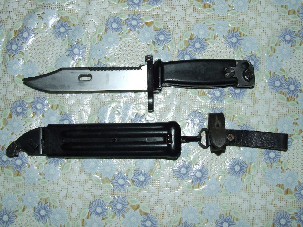 Приветствую. Прошу высказать мнения по предмету. Судя по цвету, одна из стран варшавского договора... Предполагаю ГДР. Прошу определить страну и стоимость. Ножны и штык на одном номере. Не точен. На фото пятна масла. С ув.