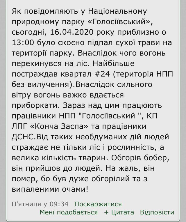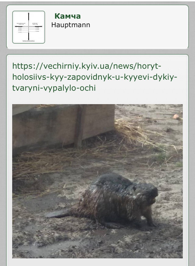 Ось просто в центрі Києва - знову кляті мисливці винні?.... В сусідній темі Камрад викладав! https://vechirniy.kyiv.ua/news/horyt-holosiivs-kyy-zapovidnyk-u-kyyevi-dykiy-tvaryni-vypalylo-ochi Бобер з випаленими очима прийшов до людей за допомогою!!! (нажаль помер від опіків), щось п...бола борейка з його сворою - ніхто ніде в такого плану місцях, ніколи не бачив!!! Тут заробітку - нема! Ех, люди люди, якщо всі хто котить бочку на мисливців, дійсно люди.....