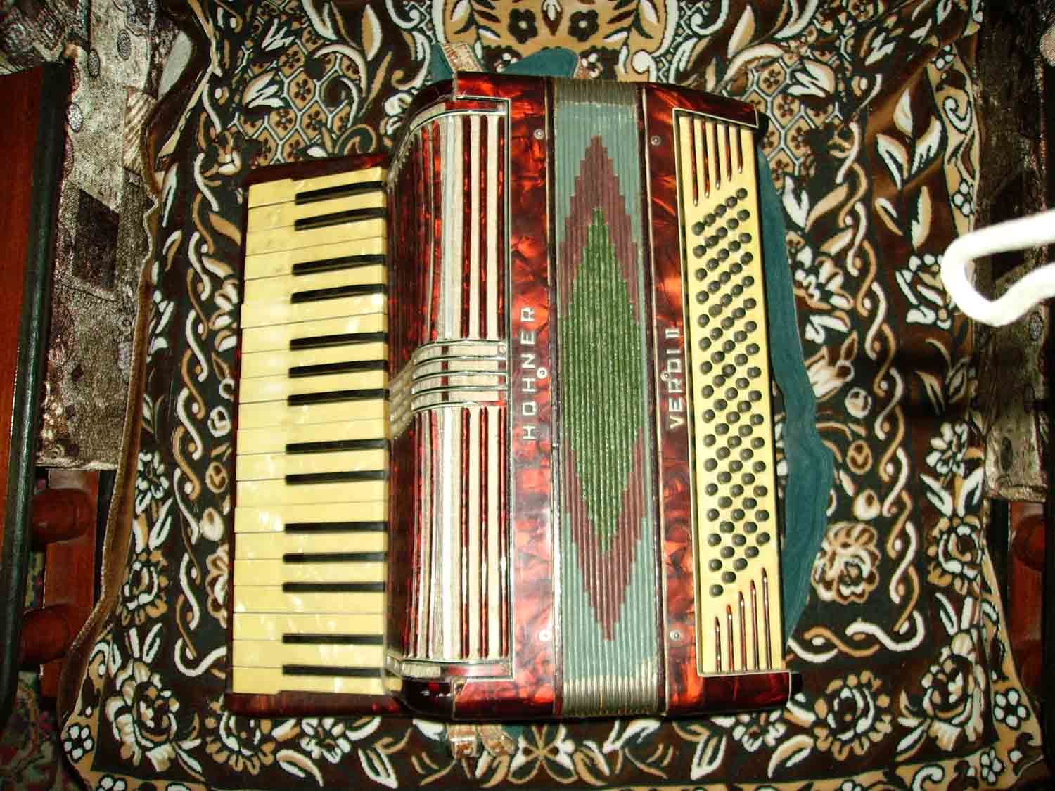 Если это Verdi II (на фото плохо видно) то выпускался с 35 по 59 г. http://www.hohner.eu/upload/links/l_00000558_Hohner Akkordeon Modelle 06_2006.pdf Стоимость определяется степенью изношенности инструмента ну и внешним видом. Определяется так: Слева и справа берутся аккорды и если при растягивании мехов идет для звучания потребляется много воздуха (для нормального звучания приходится сильно растягивать меха), то инструмен изношен. При малейшем движении мехами он должен звучать. Я недавно брал на рынке Hohner Imperial V, годы выпуска с 34-40 г. в хорошем состоянии, как инструмент вообще в отличном за 500 грн. Вот еще ссылки: http://www.hohner.eu/index.php?8 http://cgi.ebay.at/ws/eBayISAPI.dll?ViewItem&item=230335524137&indexURL=