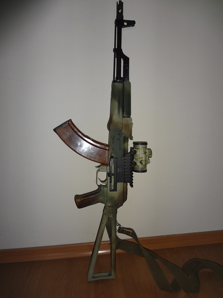 Продаю верного друга, так как перехожу на другой патрон. Коротко об стволе: выпуск 1962 год (когда за брак могли расстрелять), полностью легализован на Киевском заводе Маяк, как охотничий карабин. Ствол в идеале. Без ржавчины и раковин. Ствольная коробка штампованная. Установлена планка "ласточкин хвост" под оптику. Боковой кронштейн фрезерованный из авиационного алюминия, без болтовых соединений, с двумя планками Пиккатини под оптику и фонарь или лазер. Коллиматорный прицел Z. O. S. (аналог Бушнелл и других подобных китайцев). ДТК "Штурмовик" - лучший на сегодняшний день. Очень хорошо гасит подброс ствола и отдачу. После установки престал появляться синяк на плече. Вспышка - только маленькая искра внутри самого ДТК. Родной калашовский ремень. Не менял, так как не видел причин для этого. В комплекте отдам пенал с принадлежностями для чистки и смазки. Есть родная смазка, щелочная и XADO. Все номера на коробке, затворе и т. д. совпадают. Нет "левых" деталей. В комплекте 10 магазинов под 30 патронов. Патронов насыплю для старта разных (есть более 100 штук, в том числе учебных для тренировки скорости загрузки магазина). По кучности, точности: после установки ДТК и пристрелки попадал в поллитровую бутылку из-под колы два из двух (открытый прицел) со 100м. На 25-30м СТП на 5см ниже точки прицеливания (мне так удобно для расстояний 100+). Куча была из положения стоя 5 копеек (попадал в гильзу 12-го калибра). Коллиматор не пристреливал, так как люблю открытый прицел. Автомат раскрашен в камуфляж - на фоне леса и формы Multicam теряется полностью. Но, по желанию могу смыть и привести в оригинал. В комплекте будет РПС реплика СМЕРШ с подсумками под 8 магазинов (при желании 12), 4 гранаты, 2 утилитарных, подсумок сброса. Стоимость комплекта "юного бойца" 1200$. Возможна продажа голого карабина, как с магазина за 1000 $. Комплект будет: ствол без ДТК (будет стоять родная гайка), ремень, пара магазинов, ну и боковая планка "ласточкин хвост" уже никуда не денется. Вопросы можно в личку, можно здесь, в теме, можно по тел. (067) 901-65-65, Юрий.