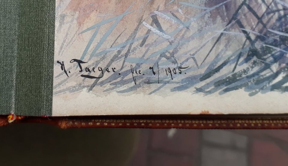 вітаю. схоже цей альбом належав художнику Taeger Karl Hans (1856 -1937 ) http://www.artnet.com/artists/karl-hans-taeger/ бажано провести атрибуцію.