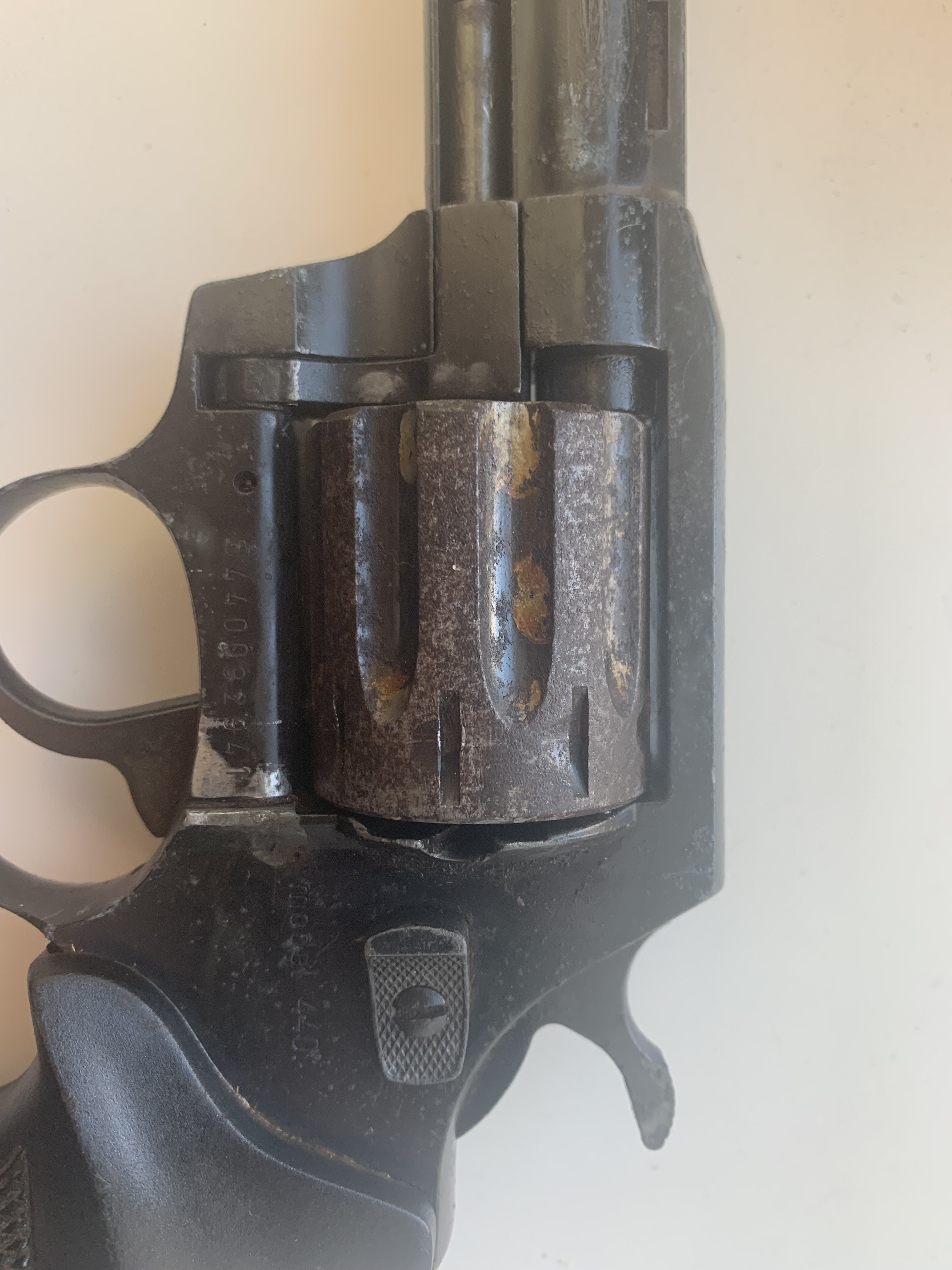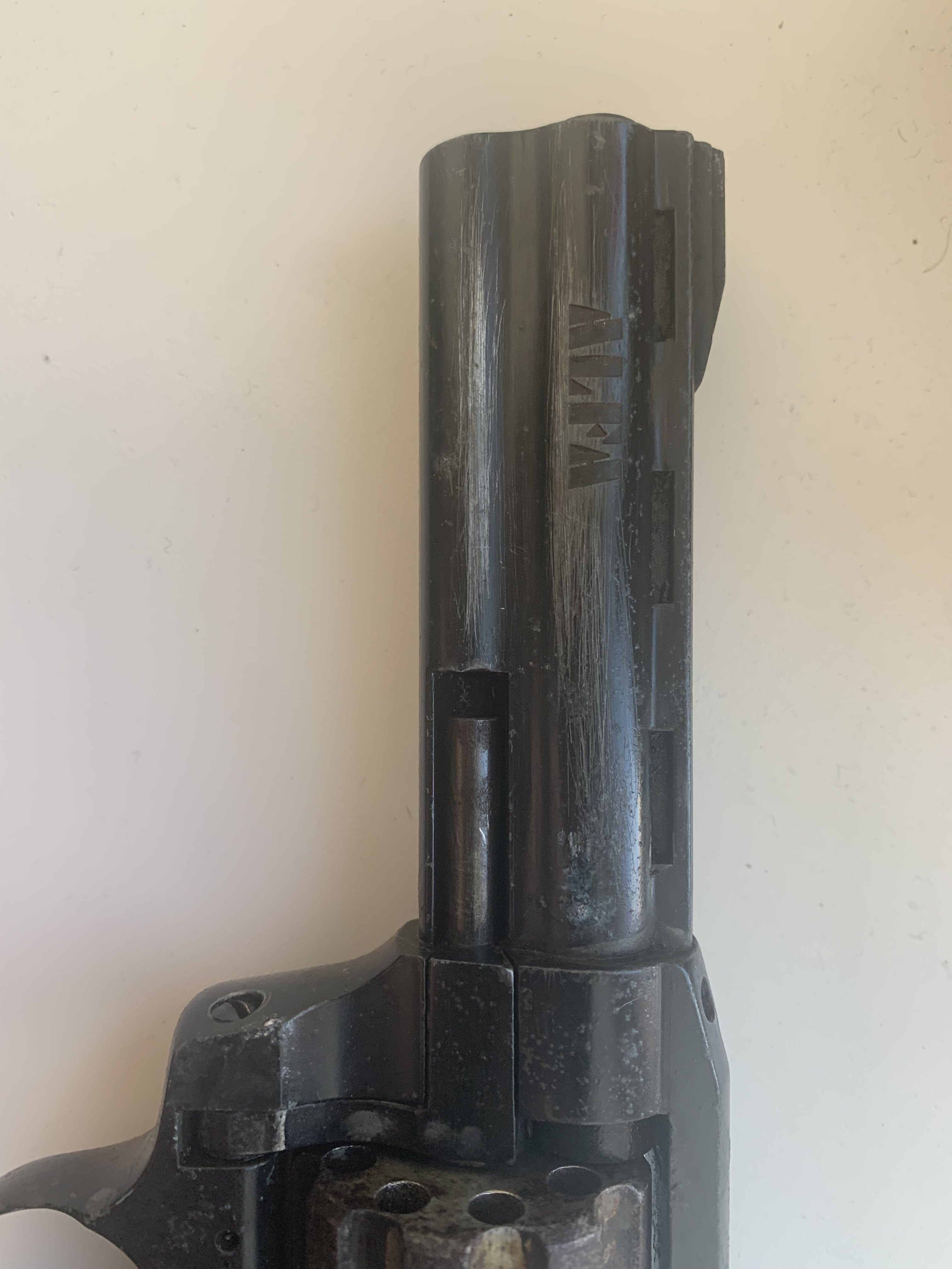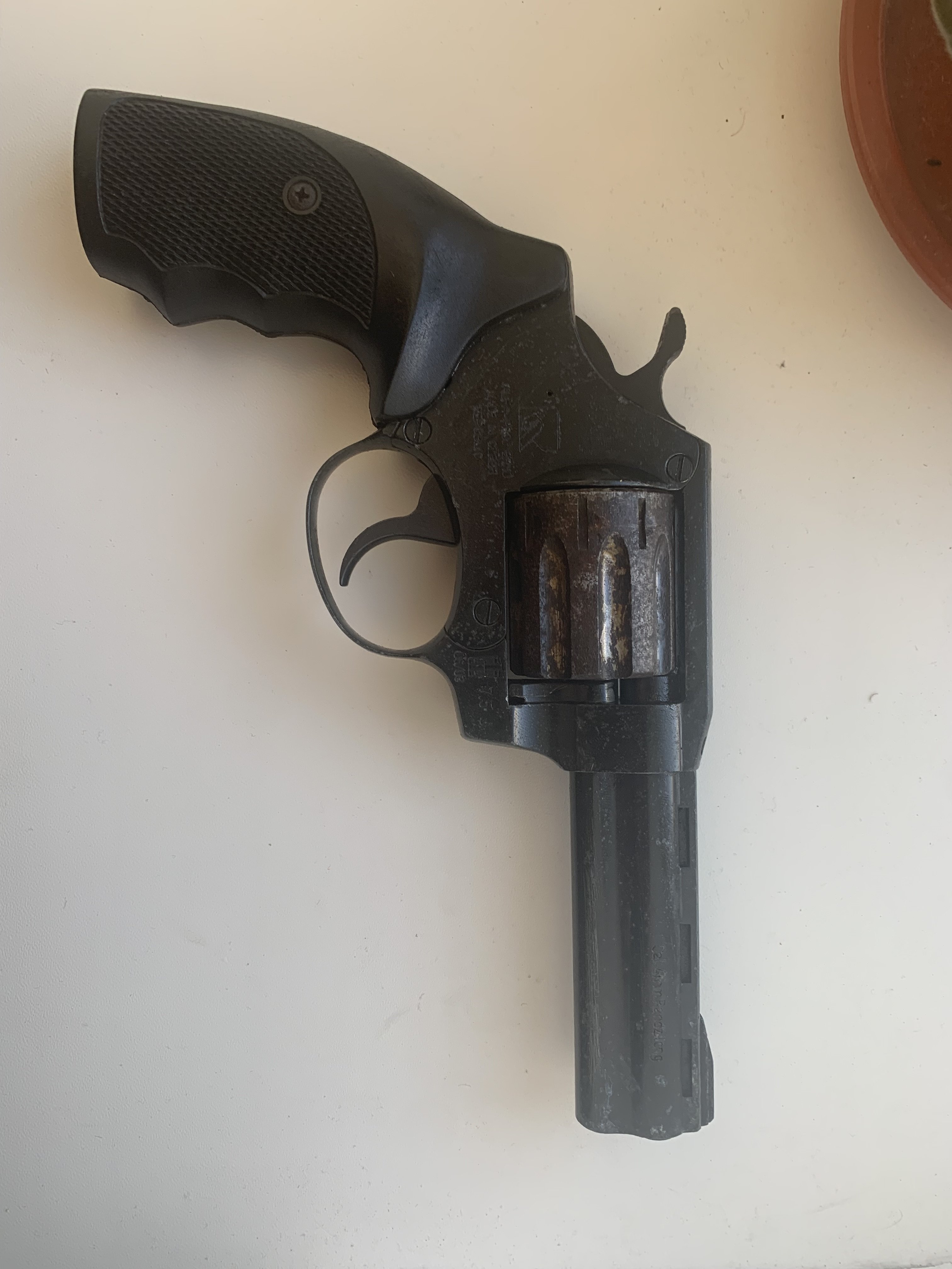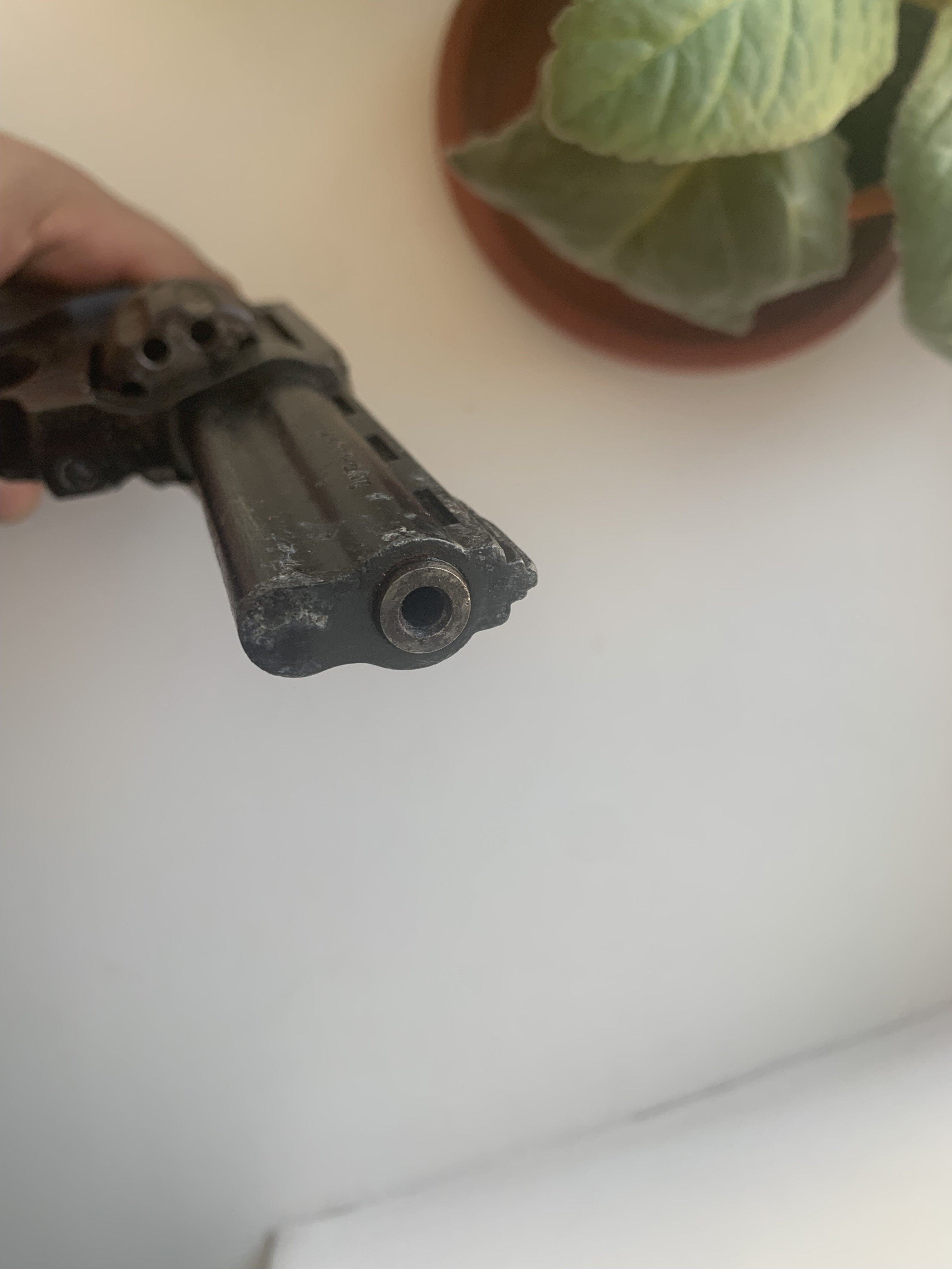 Револьвер под патрон флобера Альфа 440. Состояние на фото. Таким ко мне попал. На стальных деталях была ржавчина. Ствол и барабан немного почистил. Требуется косметический ремонт. Все функционирует. Цена - 2450 грн. Оплата на карту приват, отправка новой почтой.