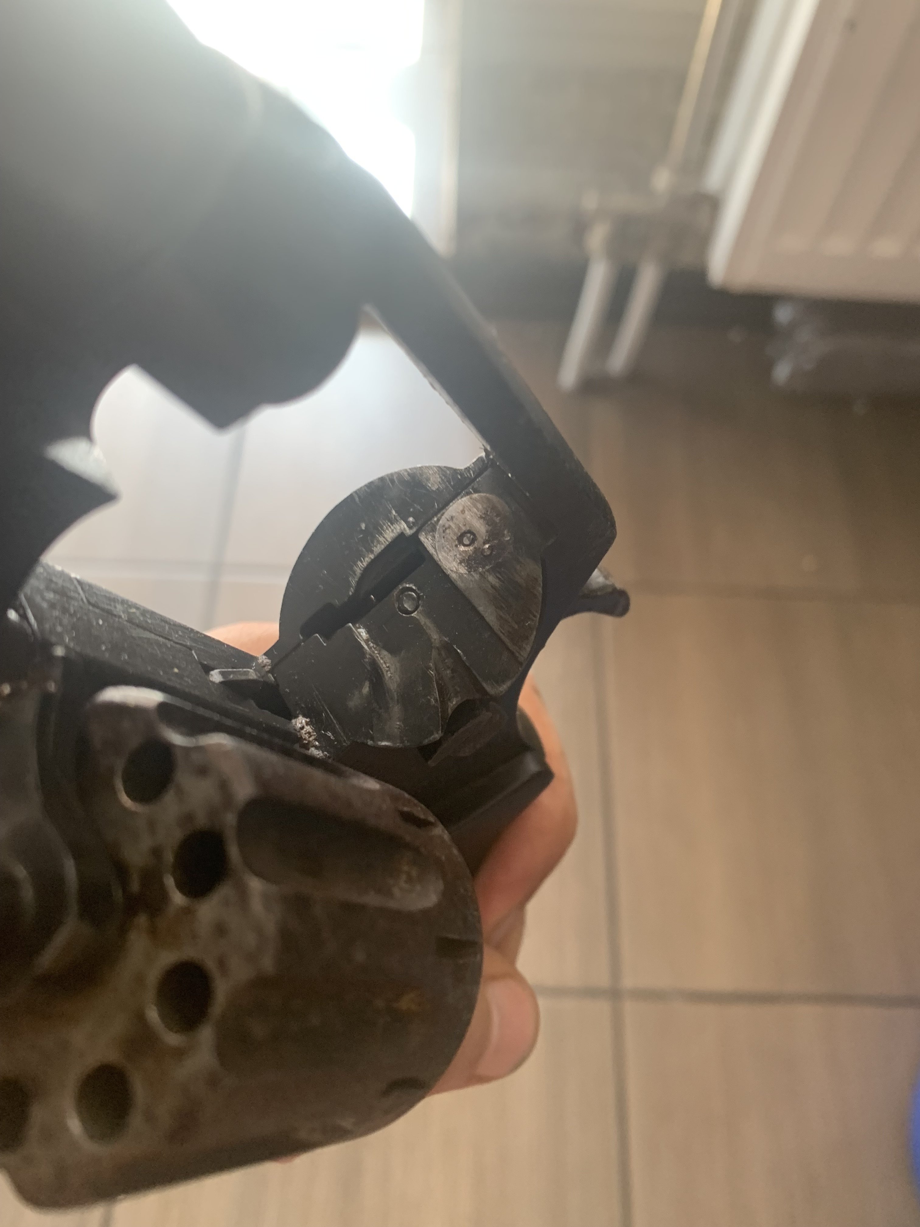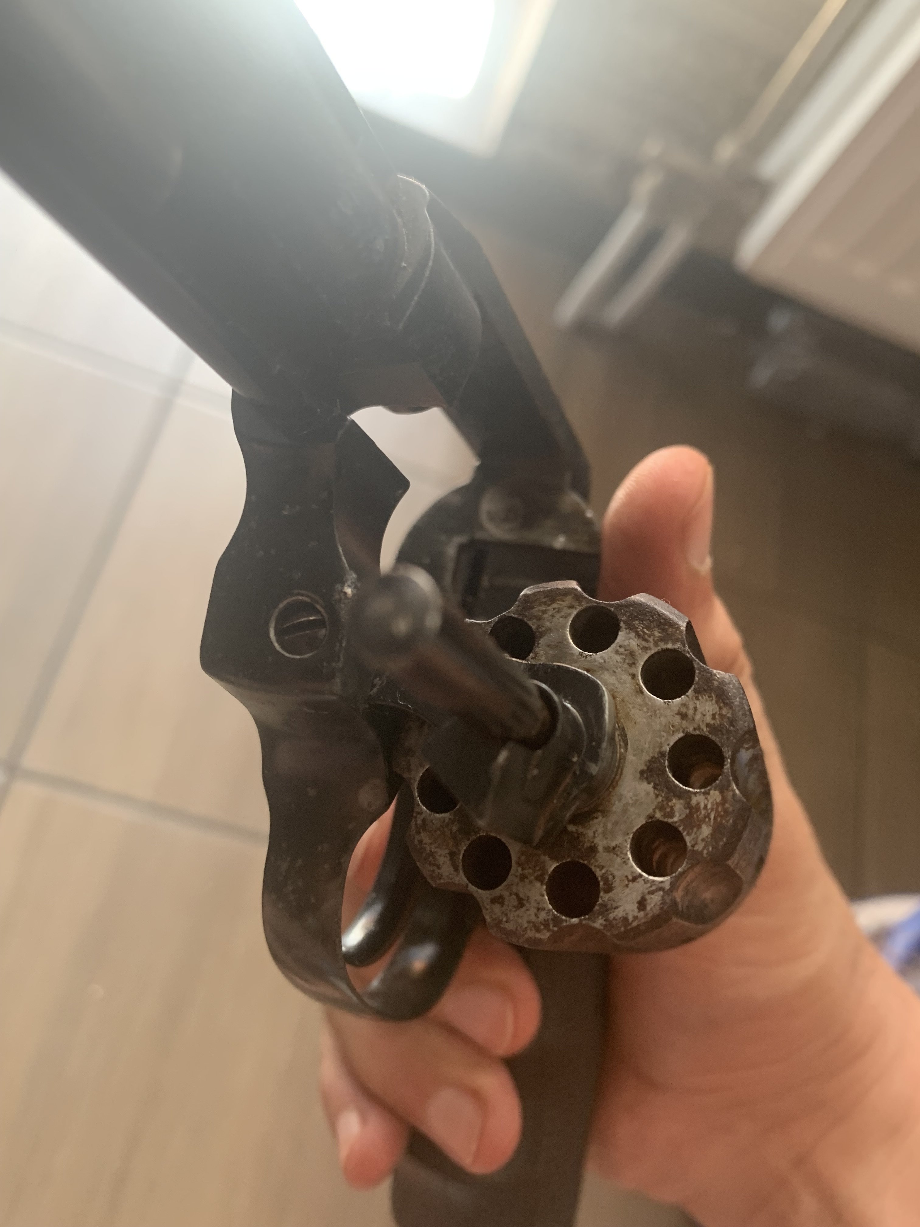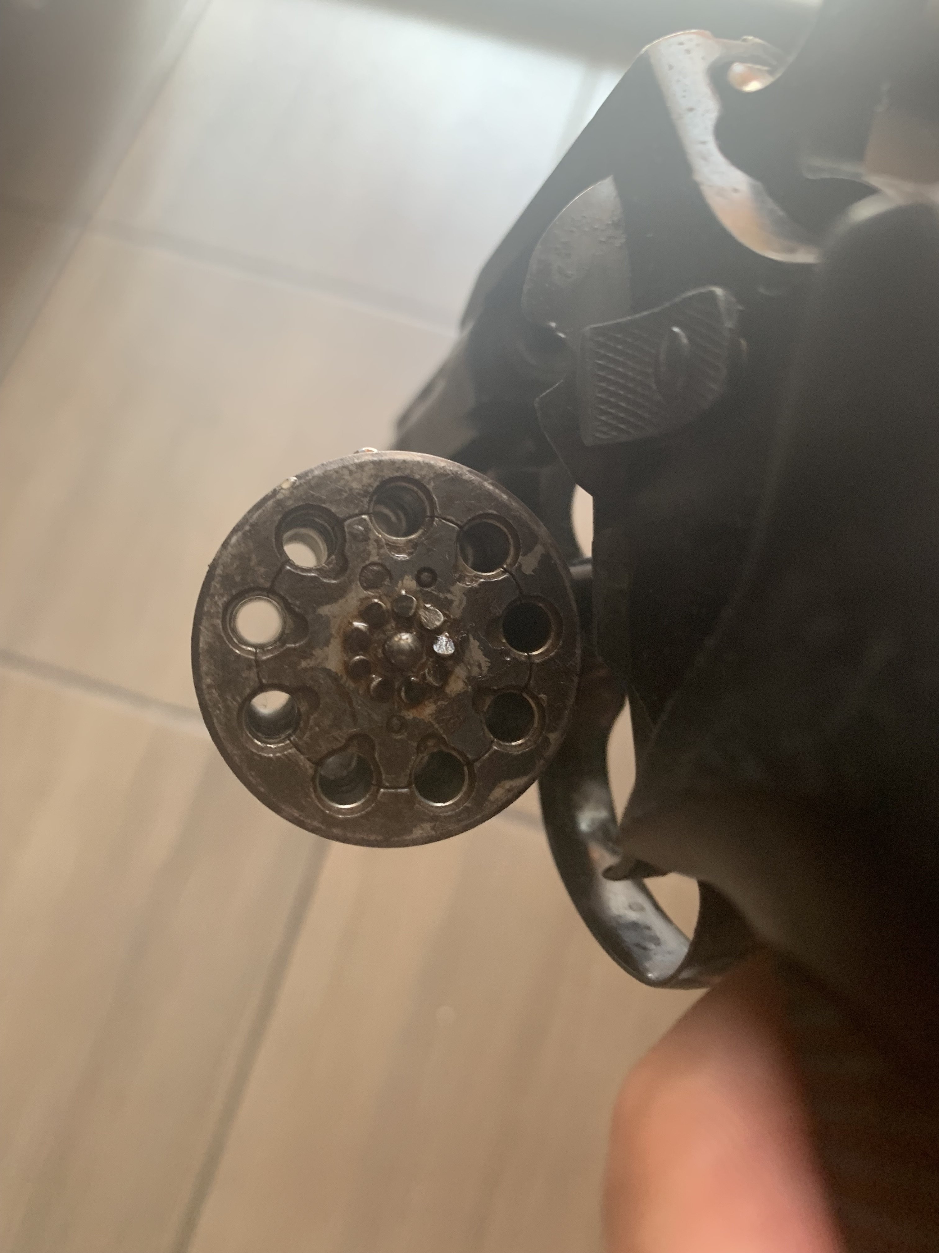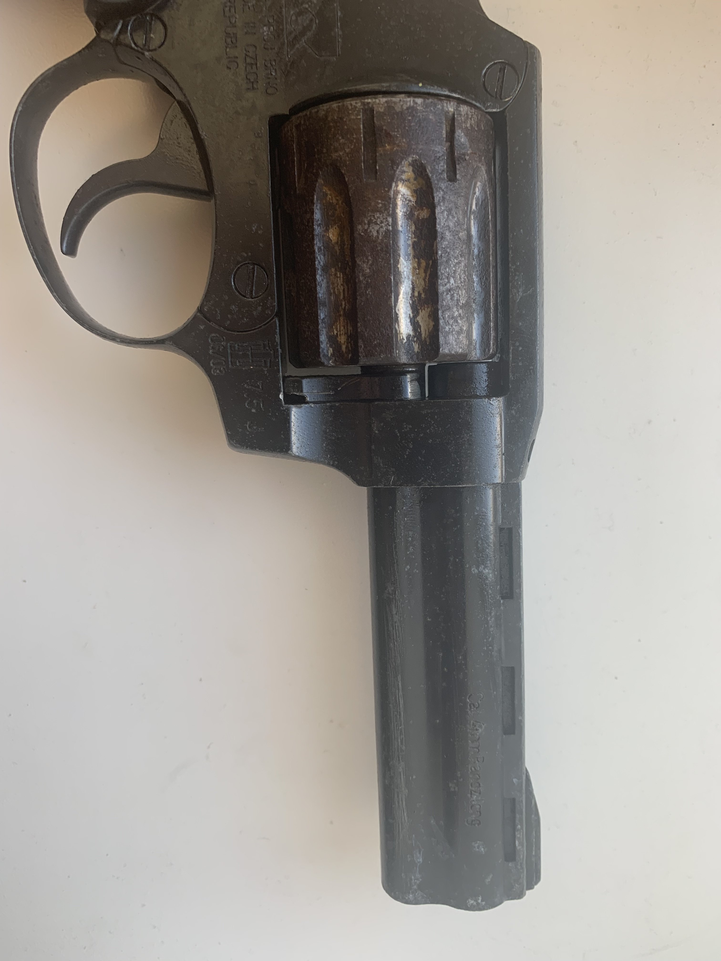 Револьвер под патрон флобера Альфа 440. Состояние на фото. Таким ко мне попал. На стальных деталях была ржавчина. Ствол и барабан немного почистил. Требуется косметический ремонт. Все функционирует. Цена - 2450 грн. Оплата на карту приват, отправка новой почтой.