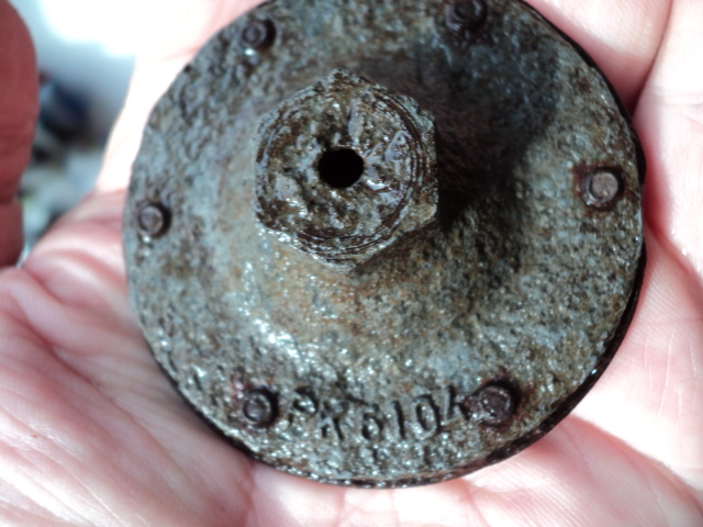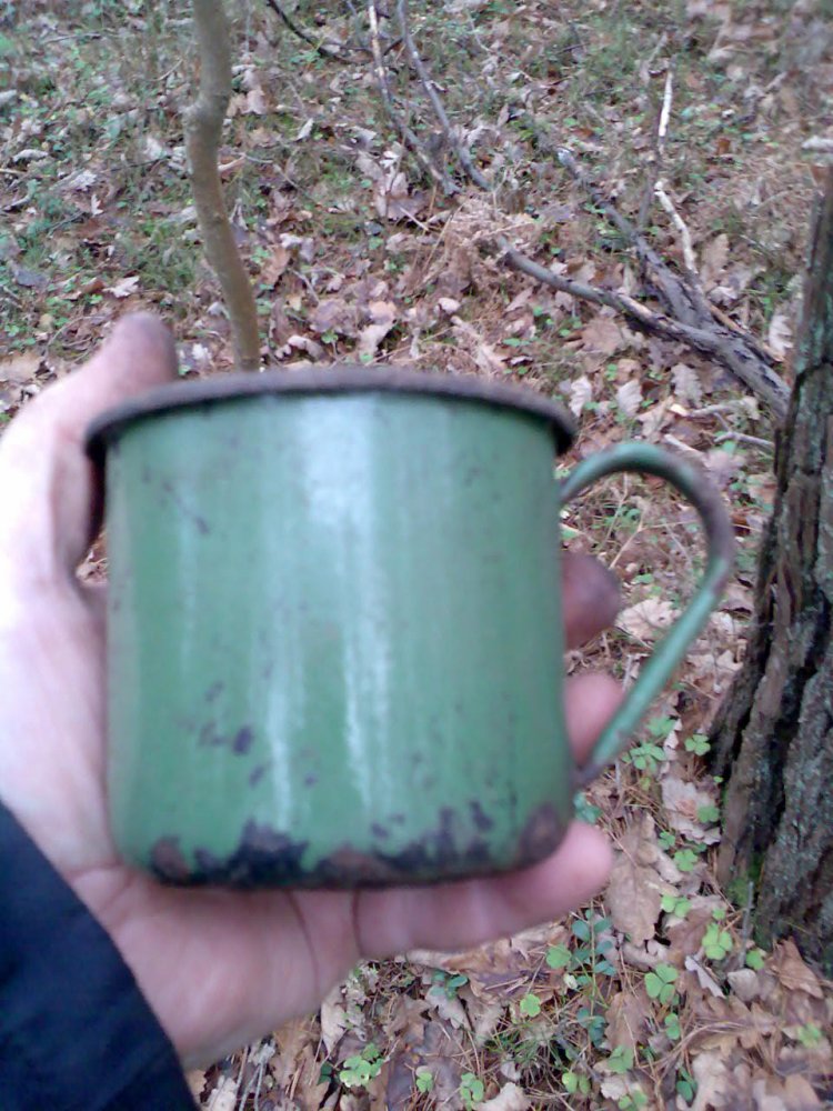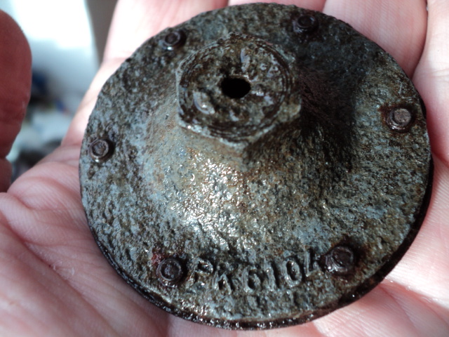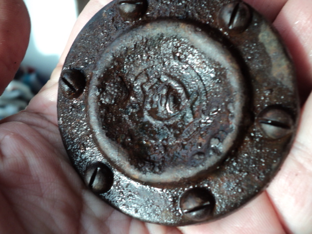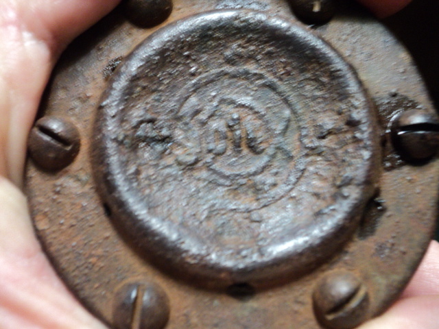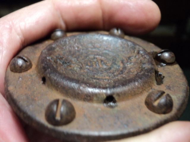 Круглая штука состоит из двух частей железной и цинковой. Соединены 6-ю железными винтами. Между ними отверстия. И вроде эмблема в кругах с надпись Sotex или что-то похожее. Что это такое? И кружечка на войну может быть?