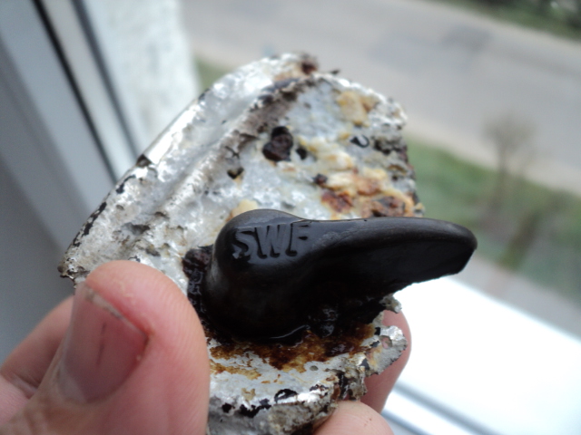 Вот вчера выкопал две алюминиевых штучки. Первая большая с двумя железными ручками. Толщина алюминиевого листа больше миллиметра, вся расчерчена какими-то кругами. Вещь, по-моему, самопальная. В сопутке железки и кусок шины. Вторая фабричного производства с пластмассовой ручкой, на которой буквы SWF. Что это такое было?