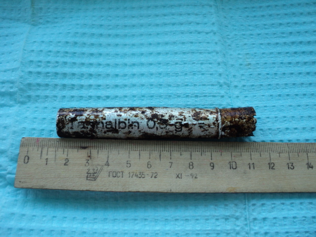 она кажется маленькой, потому, что деформирована. клейма, если они были, ставились: на алюминиевой на горловине, а на железной-на самой колбе. но здесь часто из-за краски они очень плохо просматриваются.