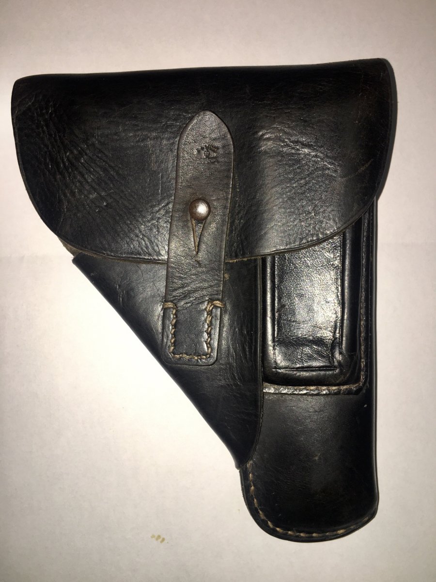Здравия, камрады. Попрошу оценки на данные предметы амуниции и поправьте если не правильно атрибутировал. 1. Кобура Вальтер Р38 (или PPK?), клеймо курицы и буквы WA 44, под хлястиком 44 и какие-то буквы толи «U» толи «J», не понятно. Все стежки на месте, разрывов нет, кожа мягкая, без разрывов и порезов. 2. Кобура Браунинг? Клейма на лицевой стороне 3 короны, цифры ...10 39 143 (что они значат вообще?) на тыльной корона и год 1939. Состояние также отличное, все швы на месте, единственный недостаток в осыпавшихся цифрах клейма. 3. Подсумок Маузер. (ПМВ или ВМВ?), клеймо 0/0156/0013 (что за производитель и какой год?). Кожа в отличном состоянии, потери швов нет, фурнитура похоже алюминий или какой-то другой белый металл. Перегородки отсутствуют. С уважением.
