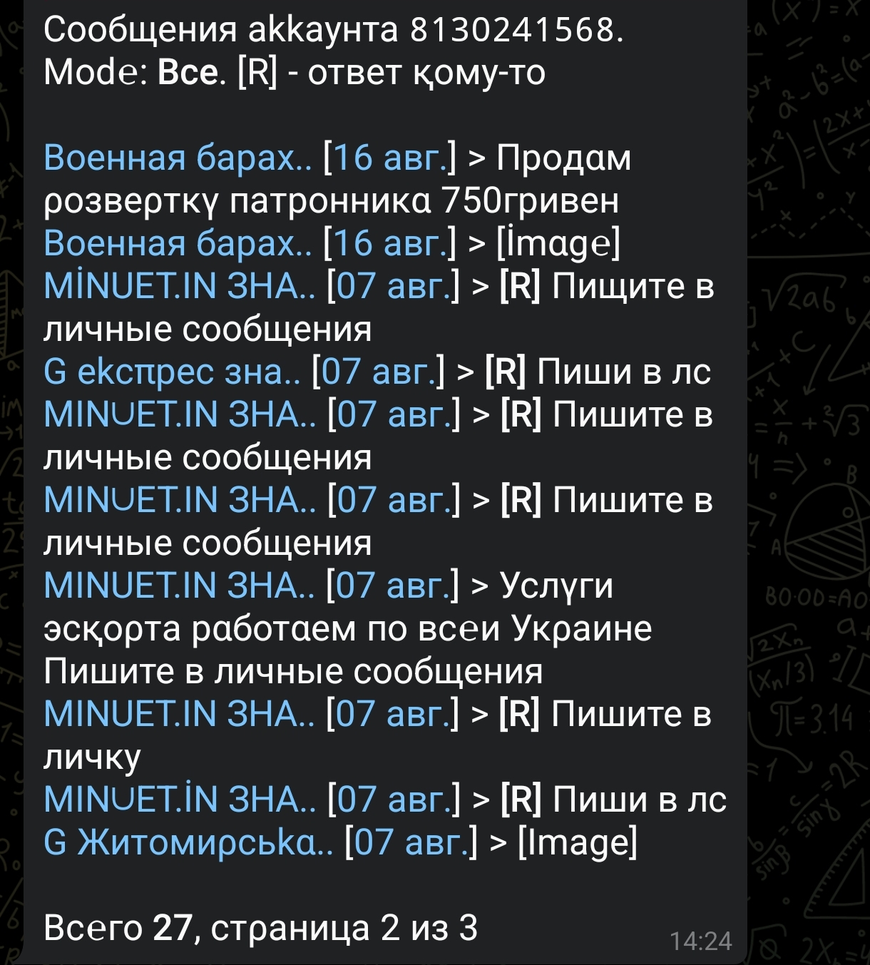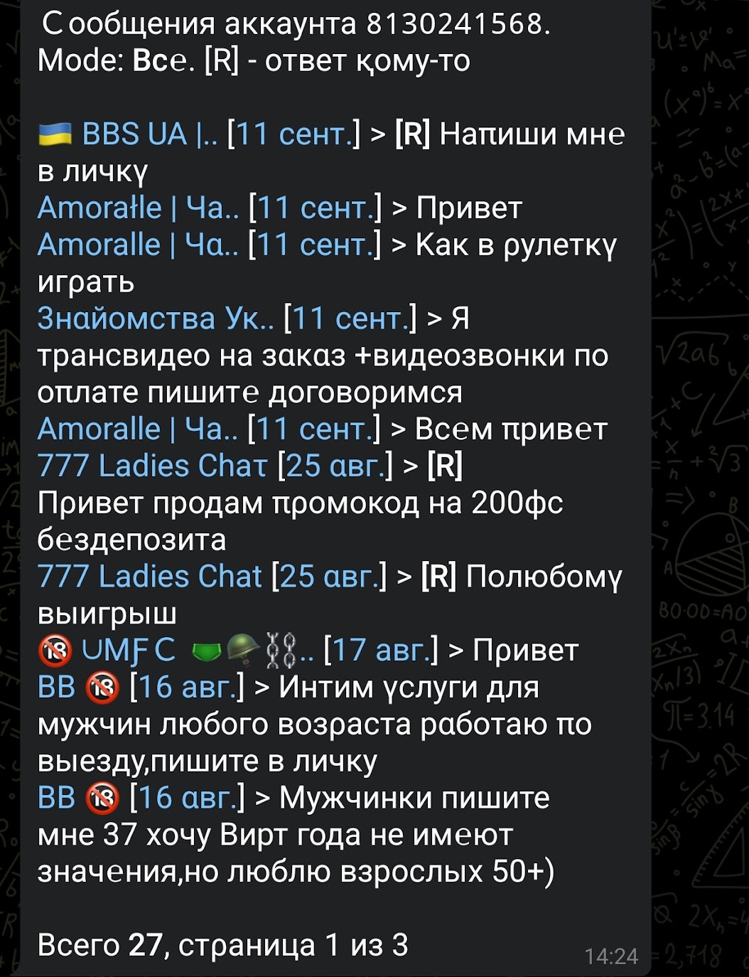 Его предыдущие ники в Telegram с августа по сентябрь. Серийный кидала