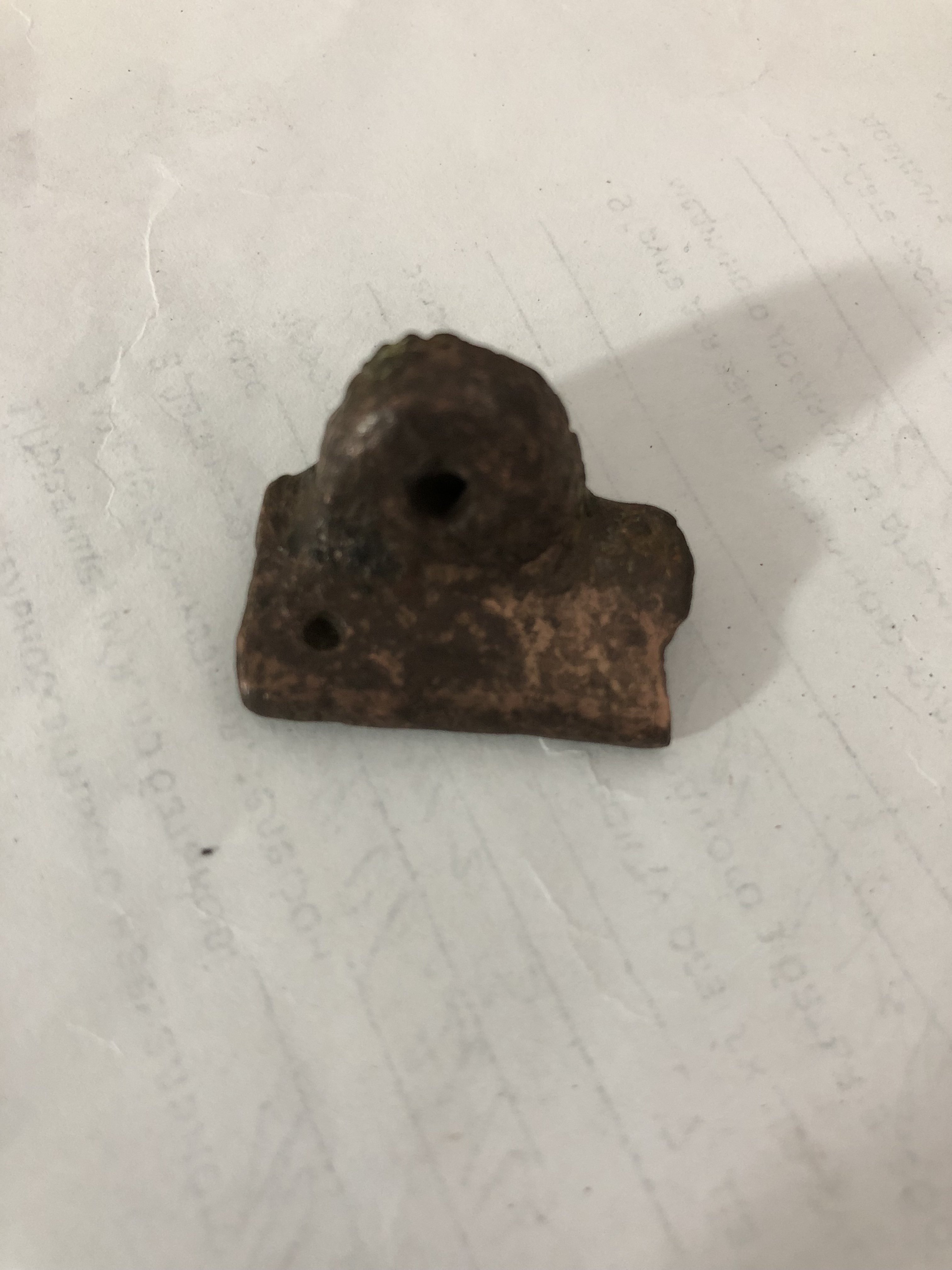 Нет, не античность. Кусок медной пластины которую использовали как шайбу или подкладку под гайку.