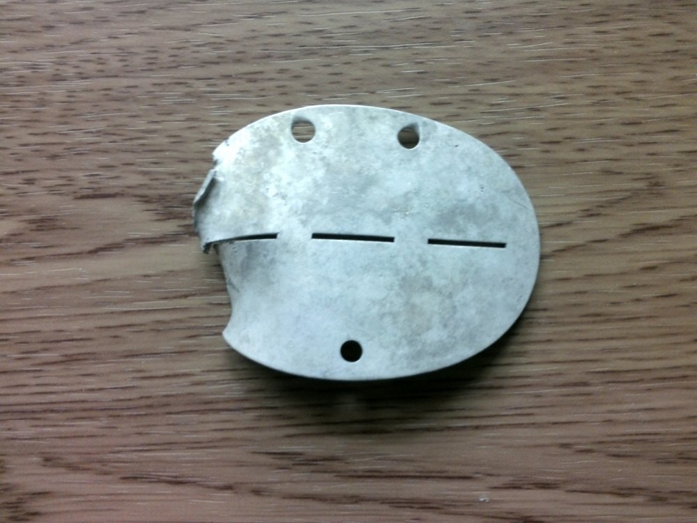Солдат обучался в учебке истребителей танков на территории Рейха, в замке Бюдинген. http://ru.wikipedia.org/wiki/Бюдинген После окончания учебки таскал жетон и дальше, довольно долго, судя по следам носки. Погиб с ним же, но видимо, жетон сорвало большим осколком, вошедшим со спины и отбросило далеко от тела, т.к. найден без останков. В каком подразделении состоял на фронте, неизвестно. Найден в центральной Украине, где точно, не вспомню.