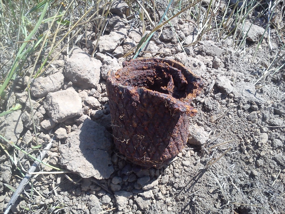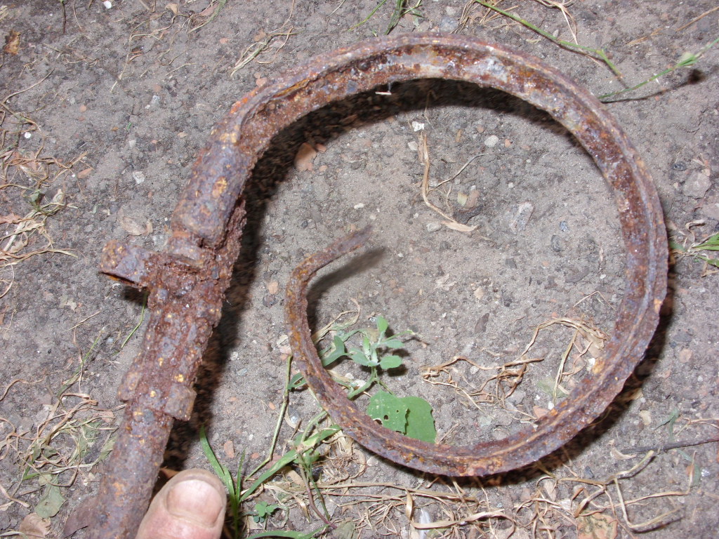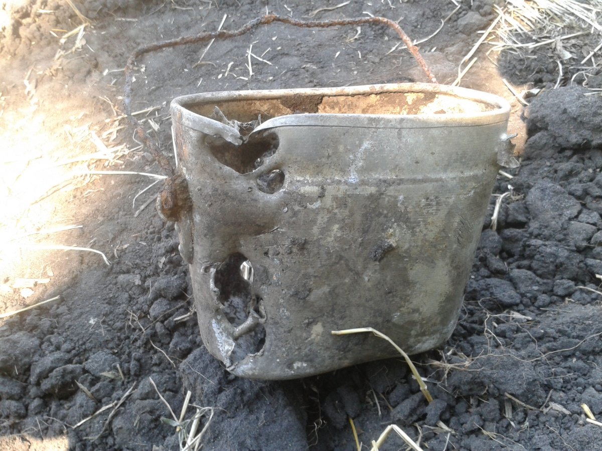 Канистра сплющенная взрывом. (Скорее всего фрицевская, но никаких надписей не нашел. Ну, и не слишком искал.)