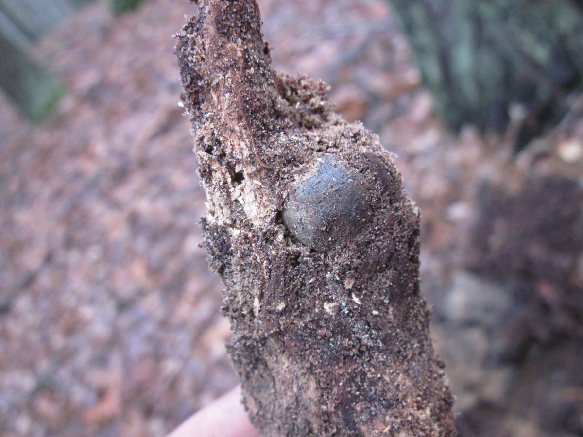 Мне этой осенью попался стабилизатор советской 82мм минамётной мины, вросший в дерево. Само дерево частично згнило, но попробую сахронить.