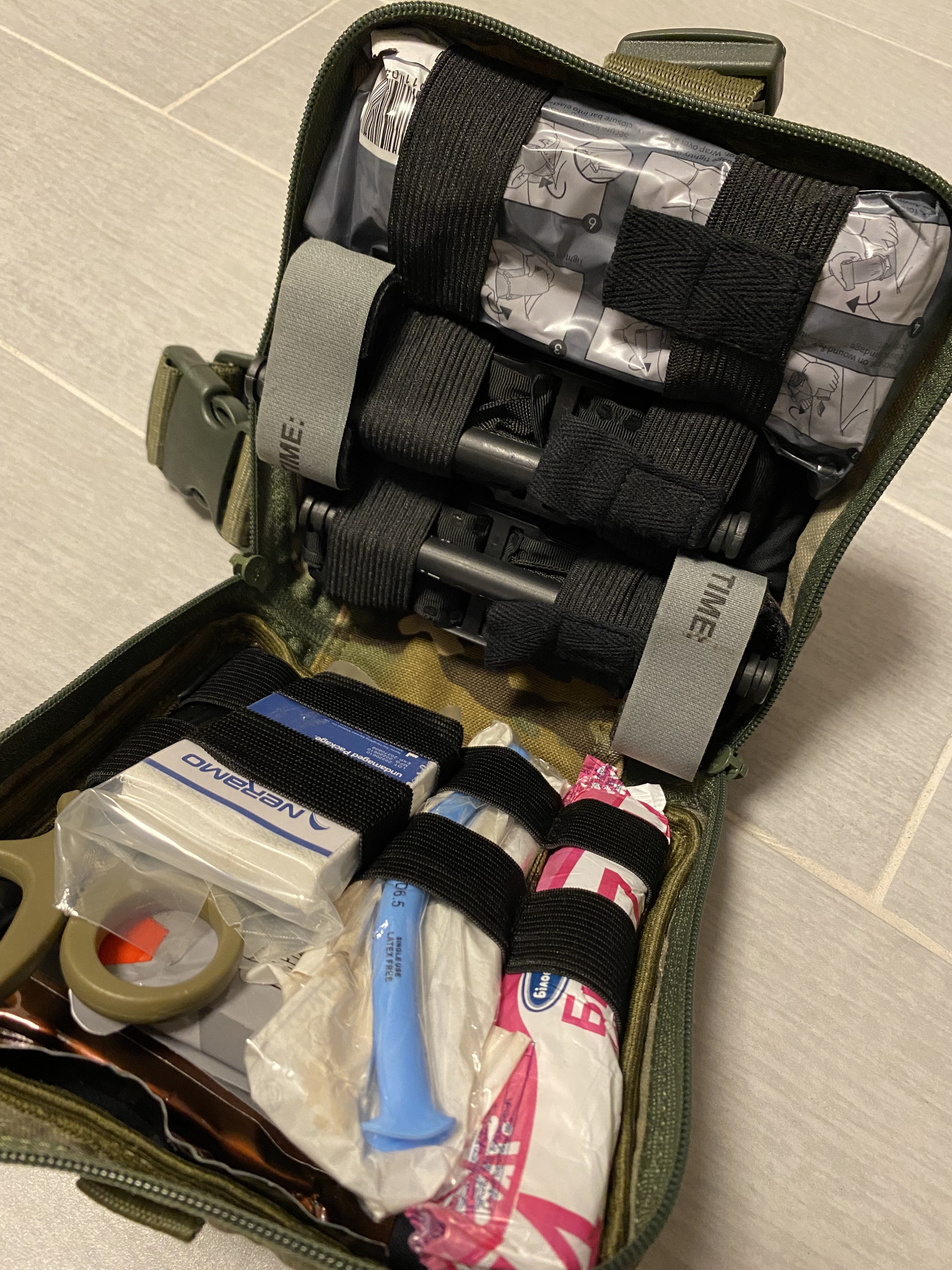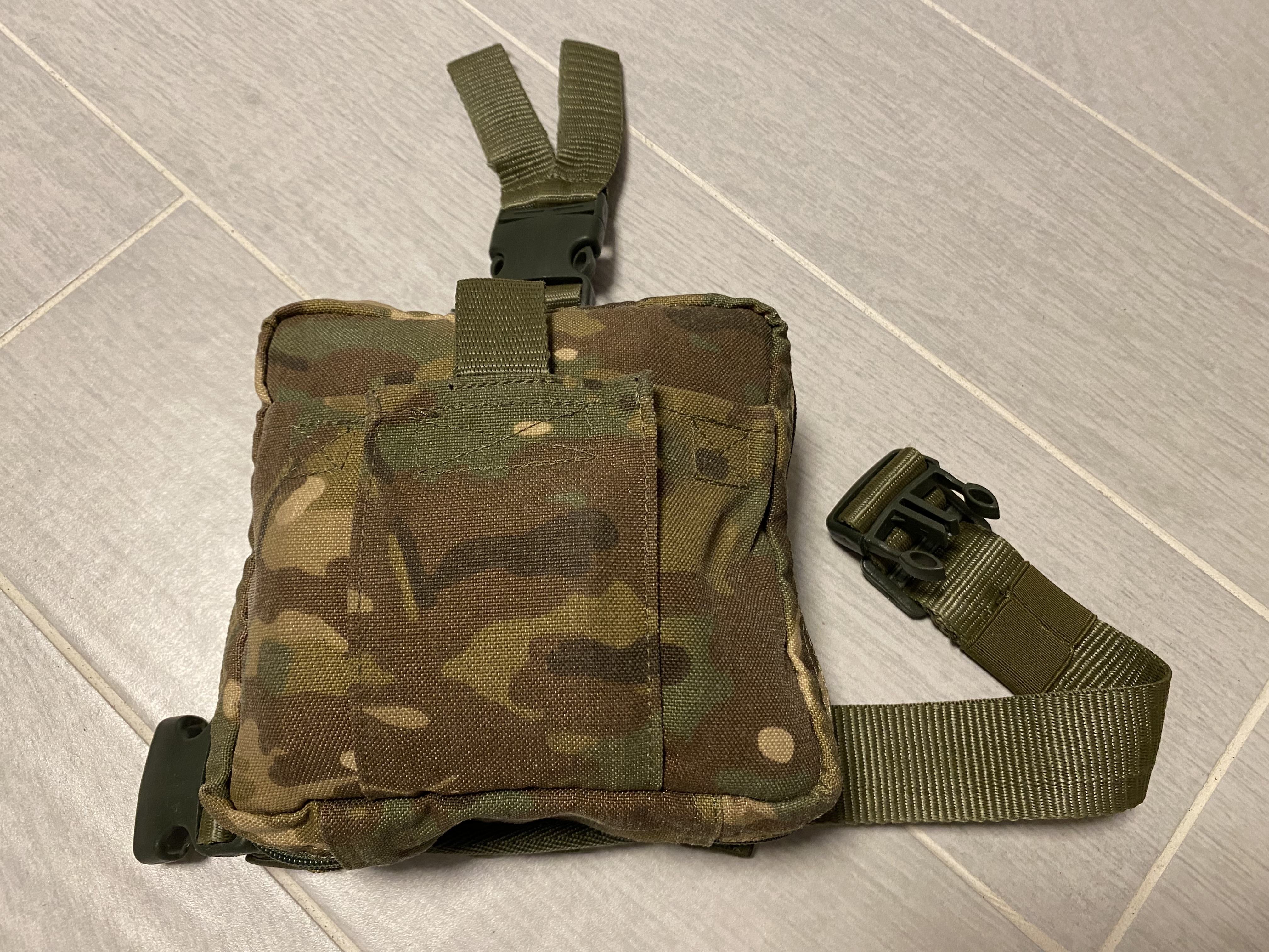 Аптечка, зібрана по стандарту НАТО, два турнікети CAT G7, розпаковані, але не використовувались. Підсумок Мультикам, хорошої якості, можна кріпити на систему молі, або на ремінь і стегно. Протермінованого нічого немає. Ціна 3000 гривень
