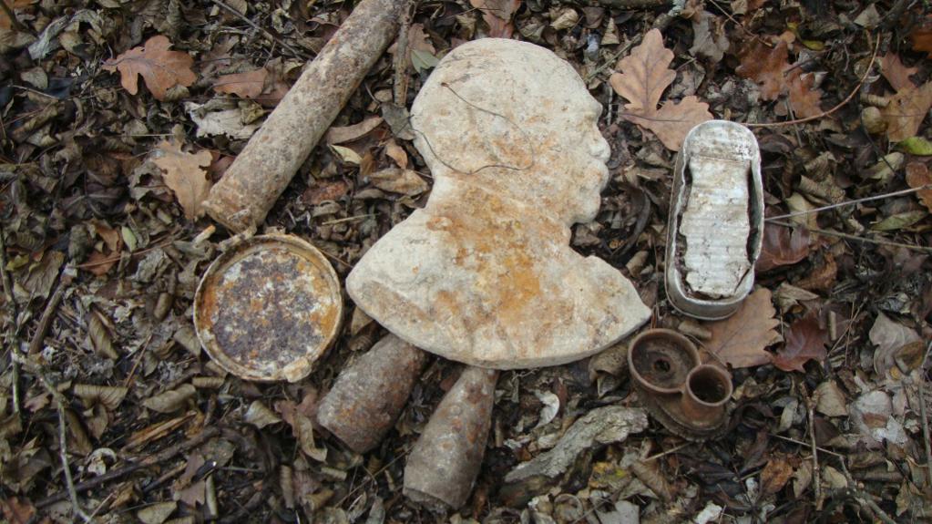 Съездил сегодня на несколько часов в окресности города и попался вот такой приятный саперный сброс для любителей делать ММГ.Все уже раскручено.:DПолный ассортимент взрываков:МП-50,М-50,М-50ш.И пару штук четырехперых летух.Но,вопрос вот в чем: чья это башка попалась рядом с блиндажем.Крепилась конкретно-болтами,надолго и серьезно.Судя по сопутке,там присутствовали-немцы,румыны,советы.И чей это жетончик?