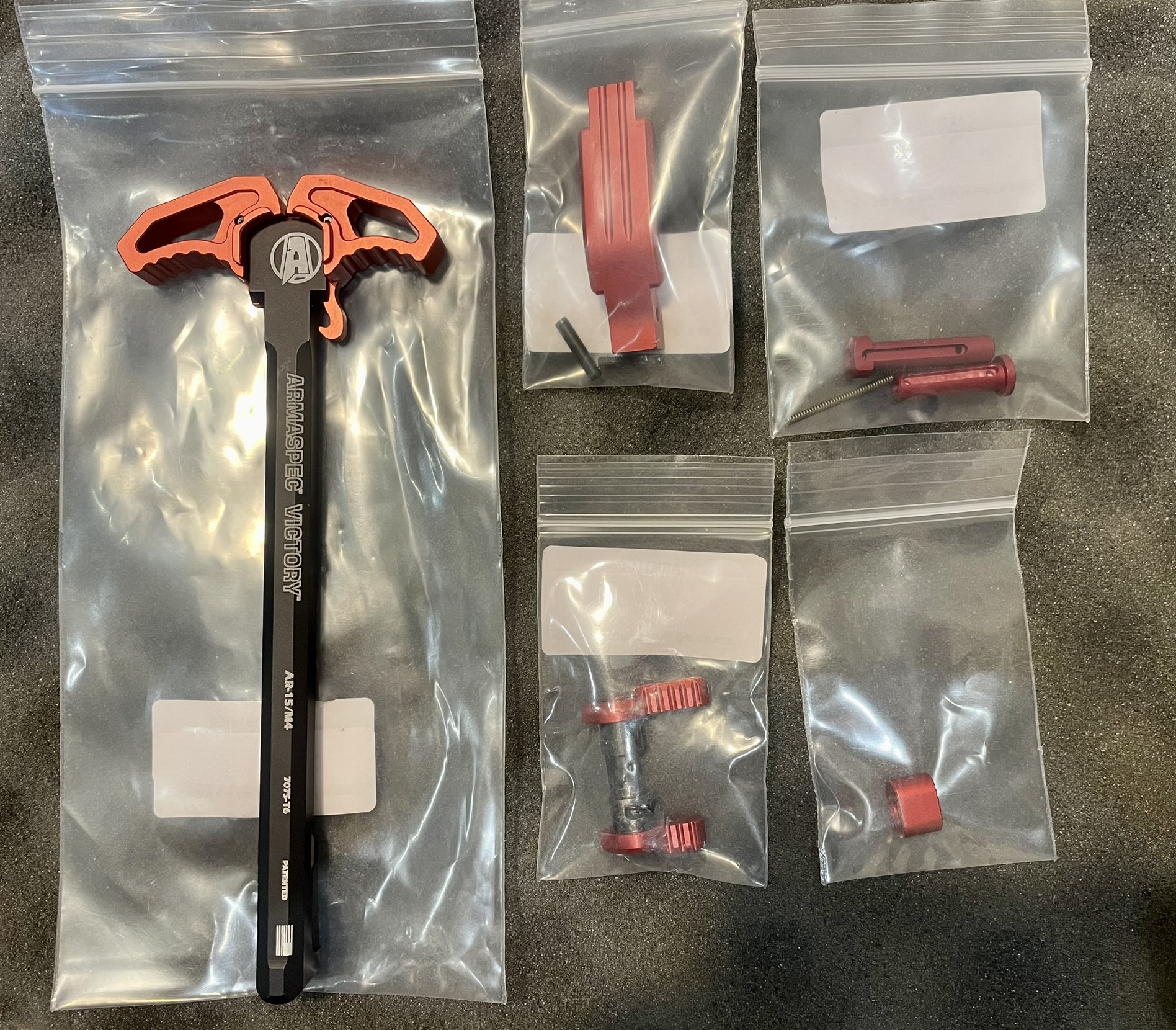 Запропоную яскравий, а головне якісний тюнінг на АР-ку від Armaspec. Одним лотом все, що на фото. А саме: - двосторонне руків'я зведенн Victory TM - двосторонній перемикач запобіжника - скоба УСМ (покращена) - піни ресивера (take down pins) - кнопка скидання магазина Все нове і оригінальне гарантовано. Ціна питання = 6000 гр-н (наявність в останньому повідомленні) З повагою, Олександр