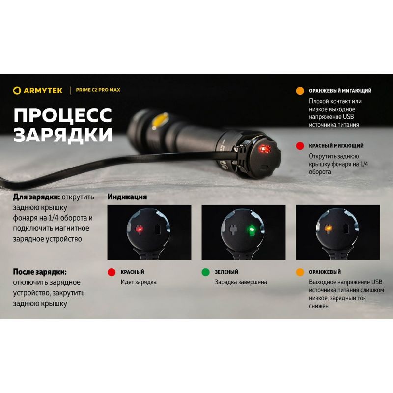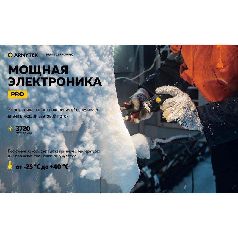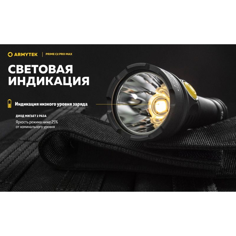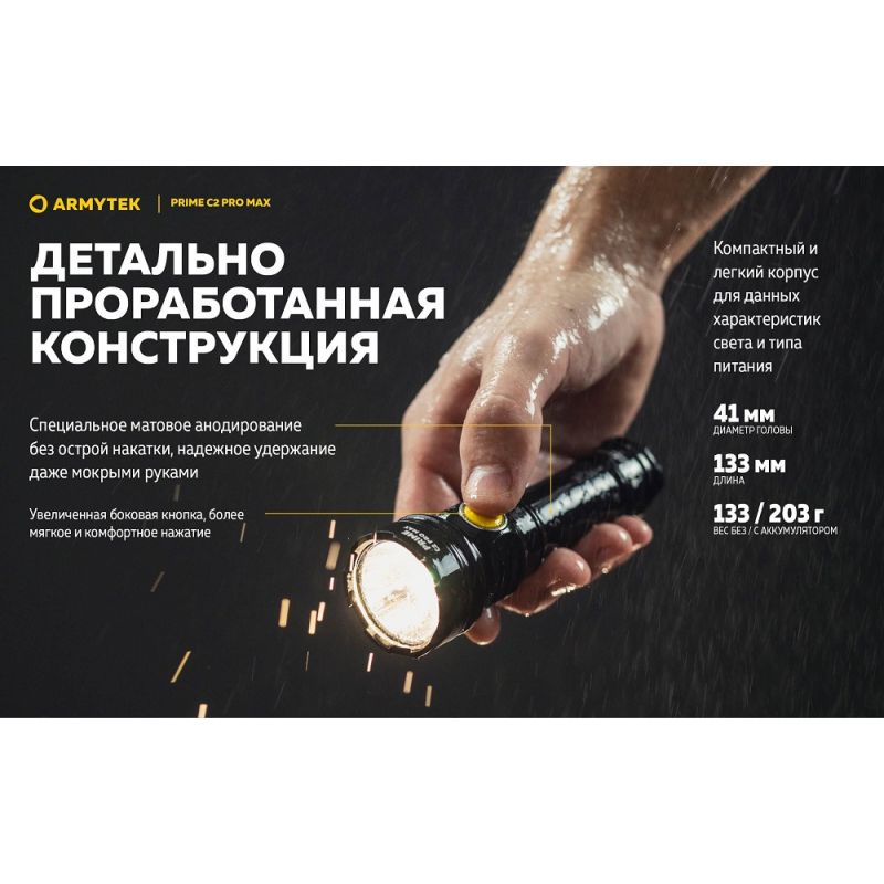 Пропоную флагманський продукт серії Prime бренду Armytek. Prime C2 Pro Max займає лідируючу позицію в серії Prime, забезпечуючи чудову яскравість 3720 люмен і вражаючу дальність променя 257 метрів. Незважаючи на збільшений радіус дії цей ліхтарик зберігає ширококутний світловий потік, який характерний для інших моделей цієї серії. Спеціальне матове анодування "тіла" ліхтаря йде без гострої накатки та приємно в руці. Prime v4 C2 Pro MAX (WARM) має підвищену ударостійкість, адже інженери компанії передбачили нові пружини для більш ефективної роботи ліхтаря та кращого захисту акумулятора та драйвера. Ліхтар має повний захист від води, бруду та пилу за стандартом IP68 – він продовжує працювати навіть на глибині 10 метрів! Витримує падіння з висоти 10 метрів. Не кожен туристичний "ліхтарний" бренд може запропонувати такі характеристики. Магнітний порт, через який можна відновити заряд акумулятора, також надійний і водонепроникний. Постійна яскравість світла без мерехтіння забезпечується навіть за низьких температур і не повністю зарядженого акумулятора. А інноваційна технологія дозволяє використовувати акумулятори 21700 та 18650 Li-Ion та забезпечує повний захист від короткого замикання навіть у разі контакту магнітного порту з металевими предметами. Корисною буде і багатобарвна індикація температури, рівня заряду та стану з можливістю відключення останньої. Для захисту світлодіода завжди на варті активний захист від перегріву вище +58 ° С у режимі реального часу. Світлова яскравість: 3720 лм - тепле світло. Дистанція освітлення: 257 м Матеріал: Анодований алюміній Оптика: гладкий відбивач Розміри Довжина/Діаметр корпусу/Діаметр голови: 133/25,4/41 мм Елементи живлення: 1x21700 Li-Ion/1х18650 Li-Ion Ціна - 3250 Оплата на карту. Відправка Нова пошта.