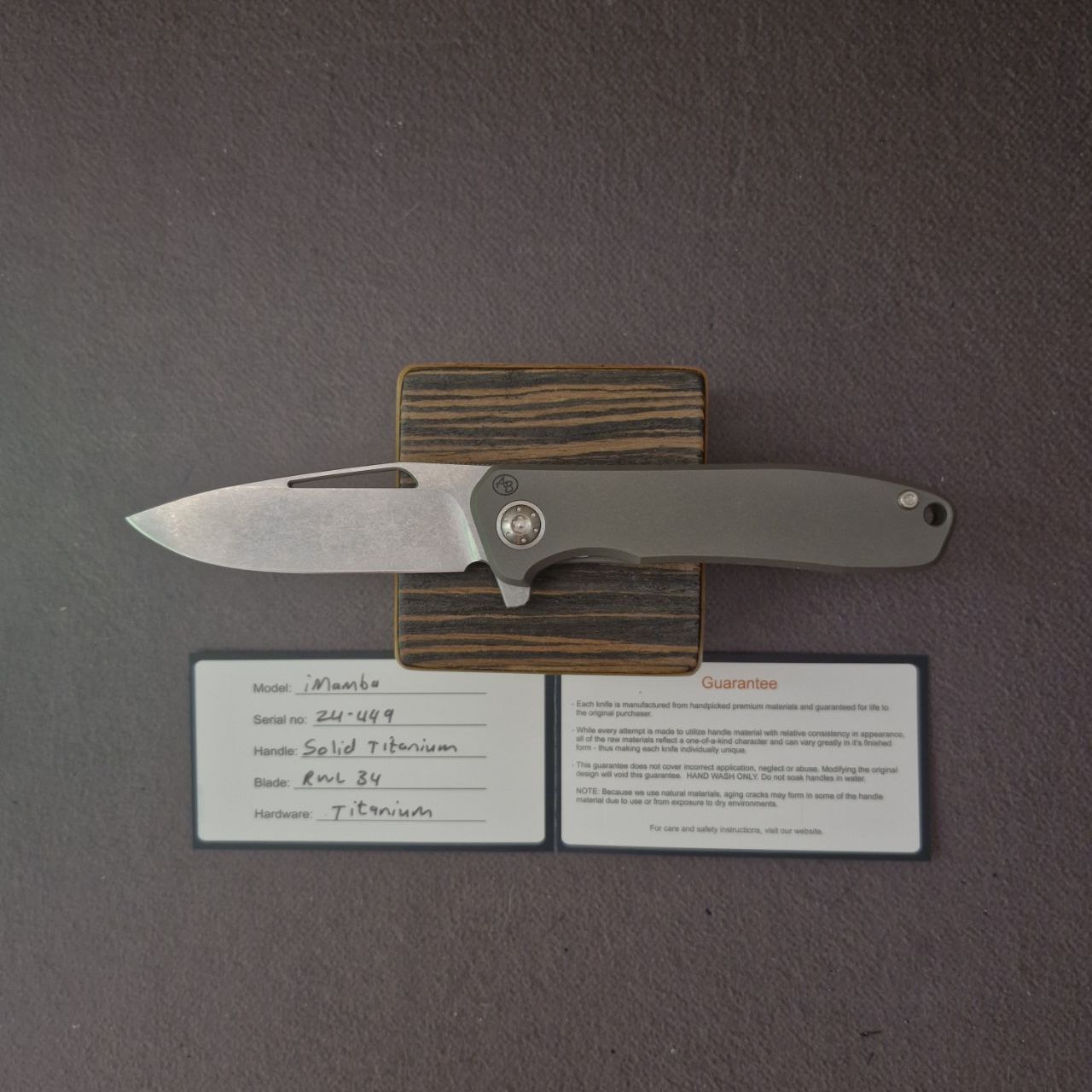 Вітаю спільноту! Пропоную придбати ніж Arno Bernard iMamba® Stonewashed Flipper with Solid Titanium (Caged Bearings) Ніж в стані нового, оригінал, повний комплект Рідкісний випадок, коли ножі такого класу виготовляються де-інде, окрім США та Європи. Зустрічайте ніж iMamba, «африканська себенза», родом з Південної Африки. І за багатьма критеріями вони дійсно схожі - повністю титанова конструкція, титанова фурнітура, багата комплектація з коробки, темляк. Зручний фліпер, ніж компактних розмірів, максимально зручний на кожен день. Клинок зі сталі RWL-34 в стоунвош покритті. Загальна довжина: 200 мм; Довжина леза: 86 мм; Товщина клинку: 3,1 мм; Сталь: RWL-34; Покриття леза: Stonewash; Матеріал руків’я: Solid Titanium ; Замок: Frame Lock; Вага: 120 г. Кліпса: 1-позиційна; Країна походження: Південна Африка. Додаткові фото/відео в ПП Ніж в Києві Вартість: 650$ Також можу привезти ніж на Ваше індивідуальне замовлення, звертайтесь в ПП! Для швидкого звʼязку пишіть в Телеграм Огляд цього ножа від українського майстра-заточника Віктора Мацикура на YouTube: Посилання Ножі в наявності: Protech PDW Invictus USN Gathering Spyderco/Lionsteel Slym M390 - Резерв Spyderco Para 3 Lightweight 204p REC Exclusive Tactile Archer Magnacut Zero Tolerance ZT 0044 S45VN Button Lock Zero Tolerance ZT0392 PURBLKWC M390 Zero Tolerance 0804CF CTS-204p Cold Steel Recon Tanto SK-5 Hinderer XM-18 S45VN Slicer Non Flipper, Hinderer Tool, Титанова накладка Kasfly Spyderco Sliverax CPM S30V C228CFP Ножі з колекції: ZT, Chaves, Hogue, Klotzli Ножі з колекції: Maxknives x Torpen, Knafs Lander