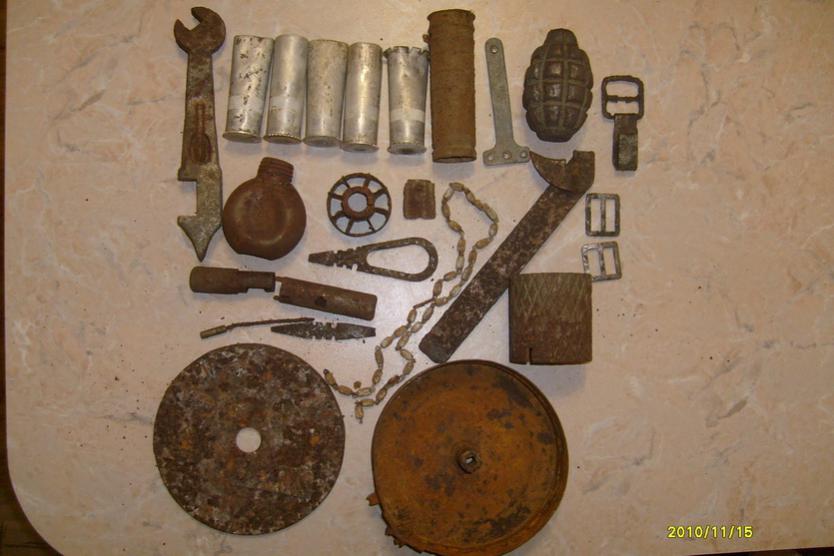 Предлагаю вот такой набор копаных вещей. 1.Пряжки зацепы пуговицы гансов. 2.хвост кассетной бомбы. 3.Колышек от палатки гансы. 4.Гильзы ракетницы гансы. 5.Корпус и крышка магазина ППШ метал крепчайший губы целые. 6.Лентопротяжка максим в идеале. 7.Ключ для подков гансы. 8.Ручка от РГД. 9.Фрагмент шомпола к-98. 10.Масленка ППШ пенал и отвертка мосин. За все 100 грн. Пересыл на покупателе.Украина.