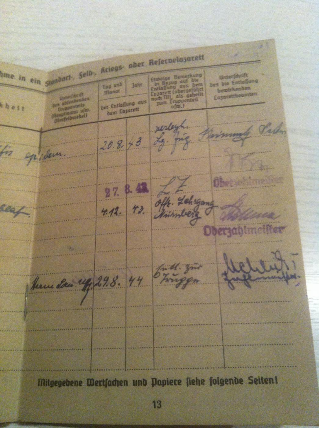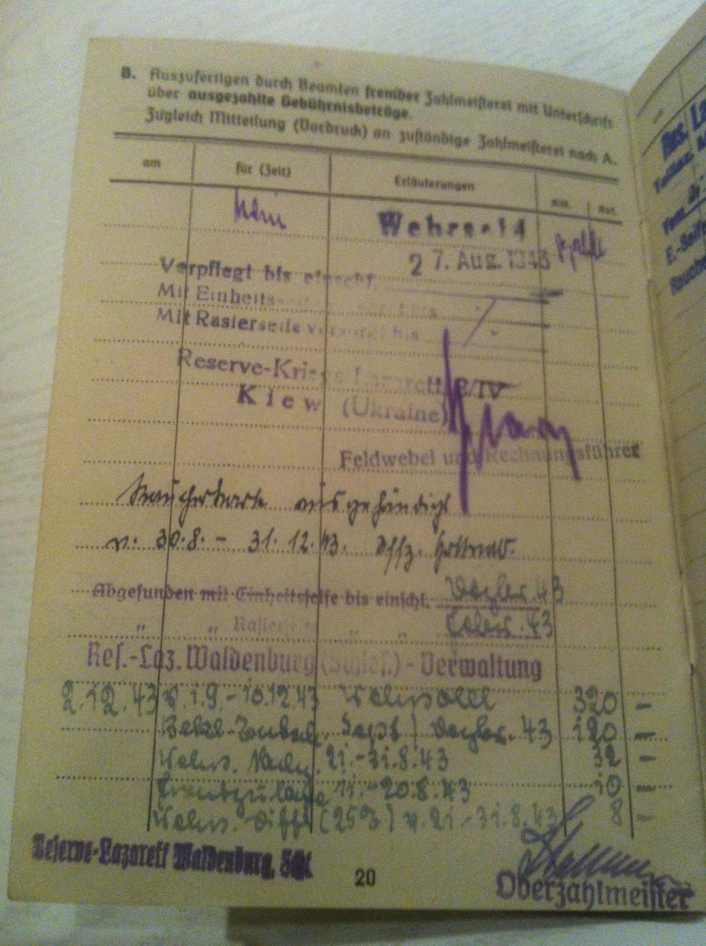Для мене цікаво те що він був в Києві в фельлазареті!!! Документи приїхали до Львова з Мюнхену,напевно родина віддала... Запитаюсь конкретніше в людини яка мені їх продала...