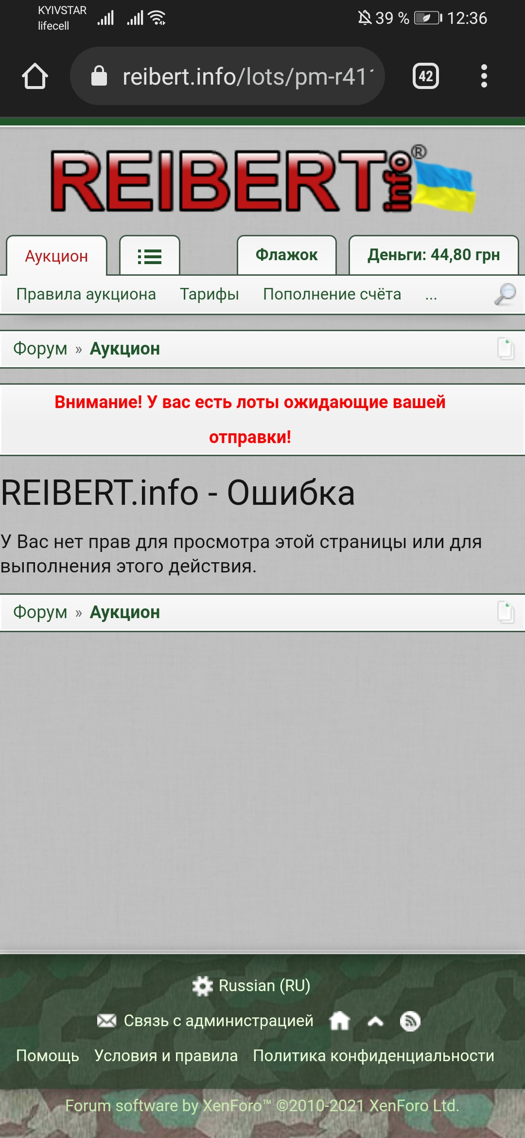 К сожалению бывают случаи когда в оповещения приходит какой-то лот, и при открытии лота пишет что у вас нет прав. Потом искать этот лот на аукционе не всегда удобно. В данный момент эта проблема касаемо лота "ПМ р411". Задолженностей по форуму или аукциону у меня нету, штрафных баллов так же нету, баланс положительный. Может я что-то пропустил конечно, но переодически бывают такие проблемы. Раньше когда такое замечал, и лот не открывался через оповещения, на самом аукционе он открывался. Было бы не плохо исправить этот баг, потому что как я понимаю в оповещения приходят лоты, которые оплатили продвижение, и к сожалению в таком случае платная реклама не всегда выполняет свои функции.
