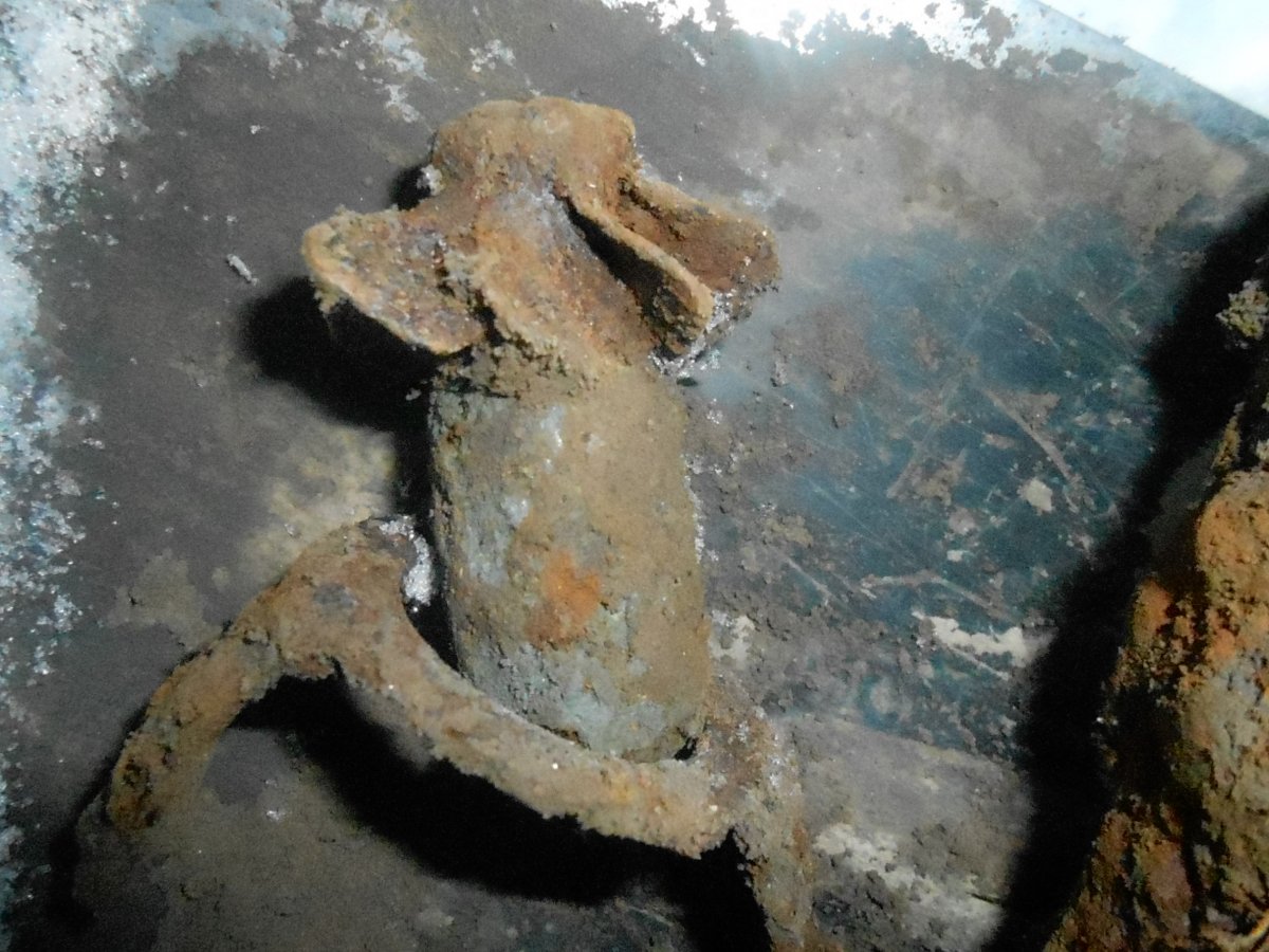 СССР. Противотанковая кумулятивная авиационная бомба ПТАБ-2,5-1,5. ВВ на месте и часть взрывателя с КД.