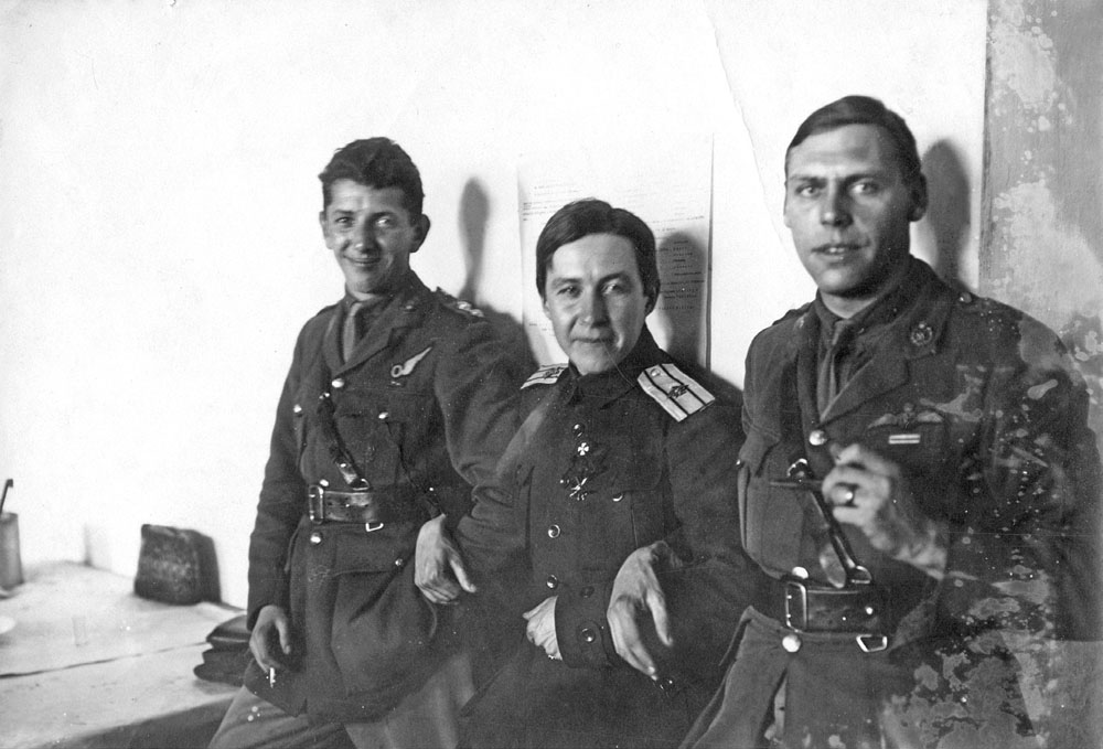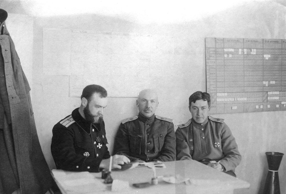 Инспектор авиации ВСЮР генерал-лейтенант И. И. Кравцевич (в центре) в штабе Донской авиации. Слева — И. И. Стрельников, справа — В. Г. Баранов. 1919г.