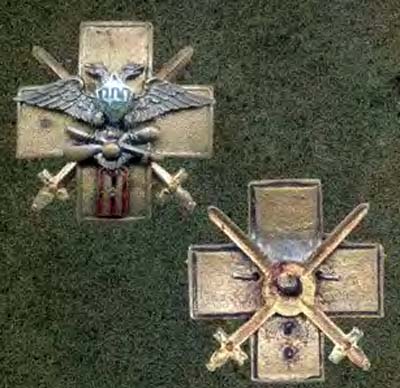 Знаки летчиков-наблюдателей: — Офицера Генерального Штаба, обр. 1914 г.; — Офицеров, окончивших Военную школу летчиков-наблюдателей, обр. 1916 г.