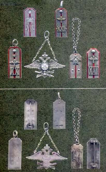 Жетоны 3-й авиационной роты. Такие жетоны, видимо, были вручены 31 декабря 1915 года сразу нескольким военнослужащим. Сегодня известны два экземпляра, принадлежавшие И.Е. Рябову и И.С. Маркелову.
