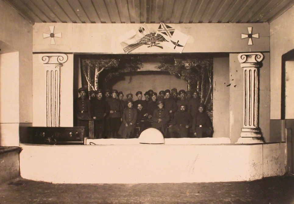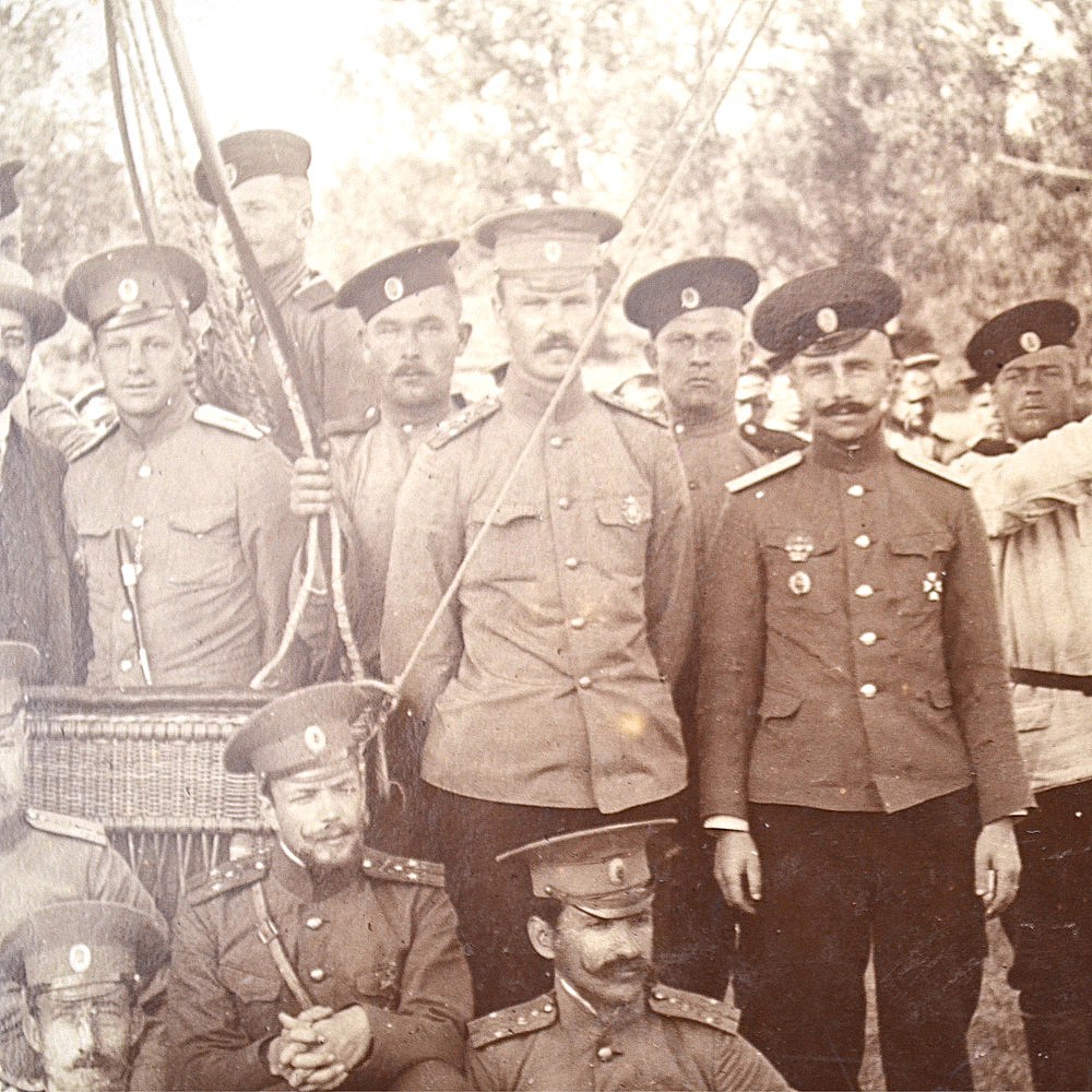 Слева направо Н. В. Сиротин, Г. И. Лавров, А. В. Панкратьев, Г. В. Алехнович, Чечулин, А. В. Констенчик, Кржичковсий, Лукинский. Лида. Июль 1915г.