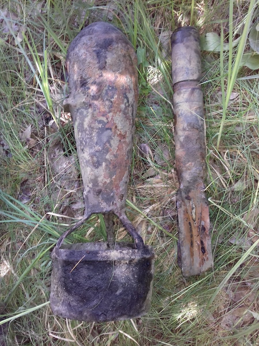 Добрый вечер. Недавно в глинистом болоте попались такие авиабомбы. Судя по всему переделки из артснарядов. Подскажите, часто такие встречаються? Попались уже пустыми, без ВВ (см фото с палкой). Много родной краски и клейм... Будет на них интерес или обратно в болото? Лопата для фото для масштаба. Длина лопаты 117 см.