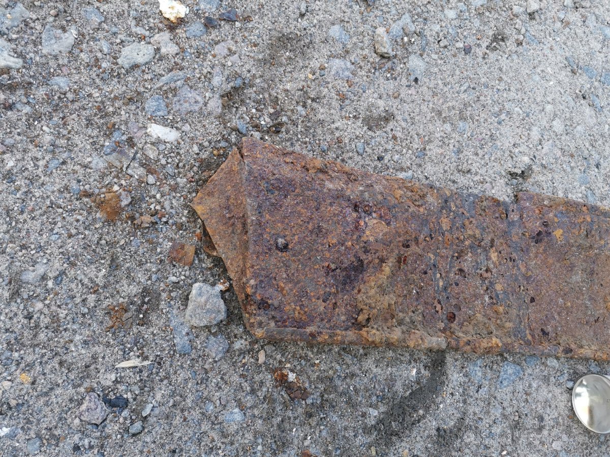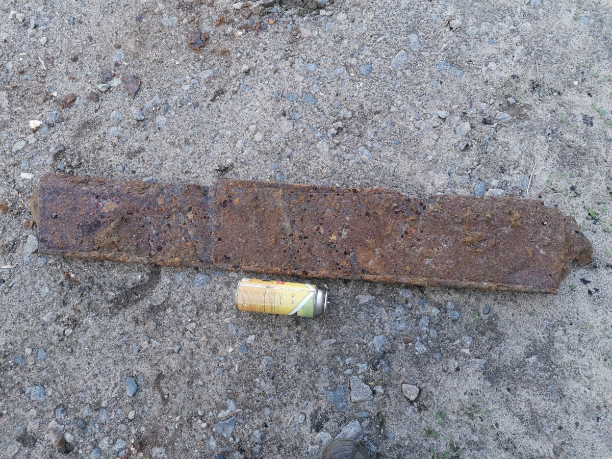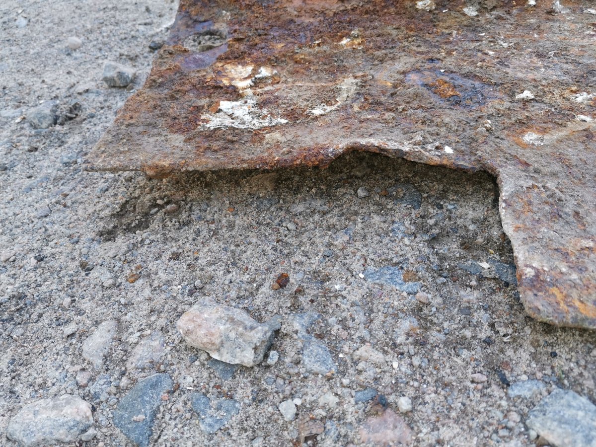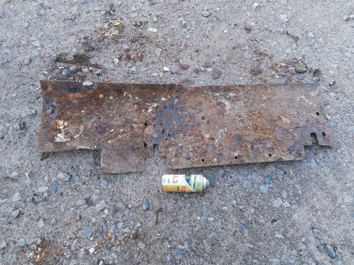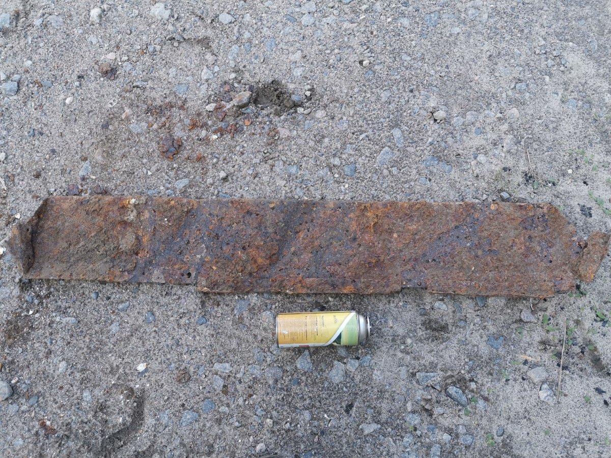 Борт(дверь)? Толщина около 3-4мм есть две завесы-упора, в одном сохранился прут распорка. С другой стороны есть петля. Из этого листа начинали что то вырубать из за этого он несеметричен.