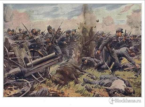 На титульной странице надпись на намецком:" Штурм австро-венгерским подразделением российской артиллерии".