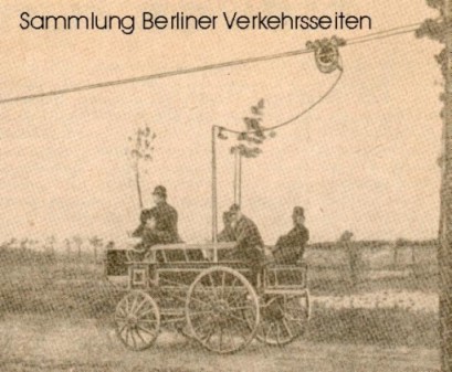 первый в мире троллейбус поехал на 100 лет раньше - в 1882 году в Hallensee, разработка инженера Werner von Siemens в годах 1904 и 1905 была открыта троллейбусная линия von Niederschöneweide nach Johannisthal накануне 1-й Мировой войны стали ездить троллейбусы в Steglitz (1912-1914) фотография из берлинского архива пробного троллейбуса Сименса 1882 года