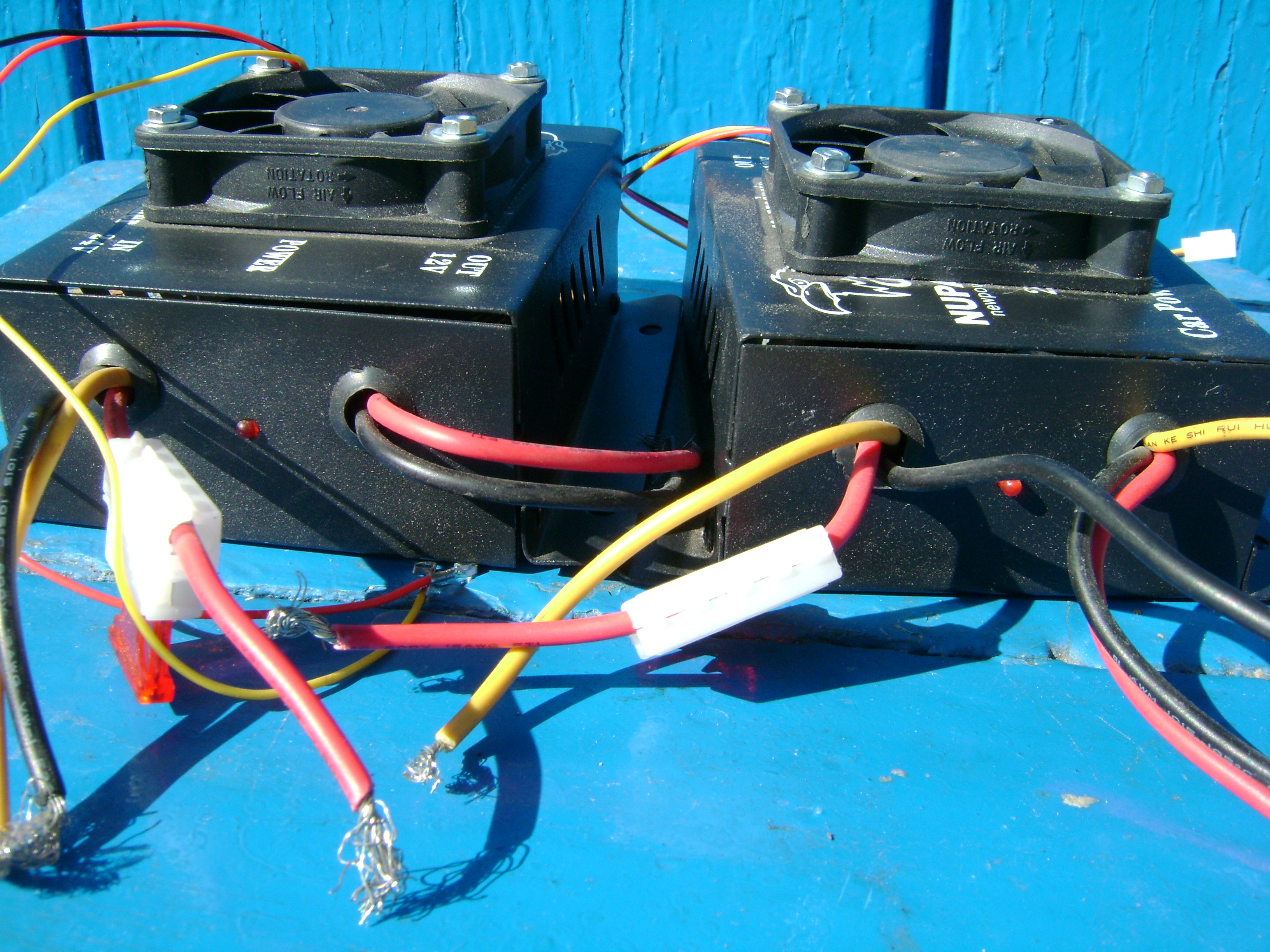 Доброї ночі. Це перетворювачі понижаючі із 24 на 12 вольт. Могли застосовуватись на техніці із мережею 24в для заживлення малих радєєк і тому подібної техніки на 12в. По потужності - гляньте на величину запобіжника в мережі 24в. Кулера точно не рідні, вмикалися окремо для додаткового охолодження.