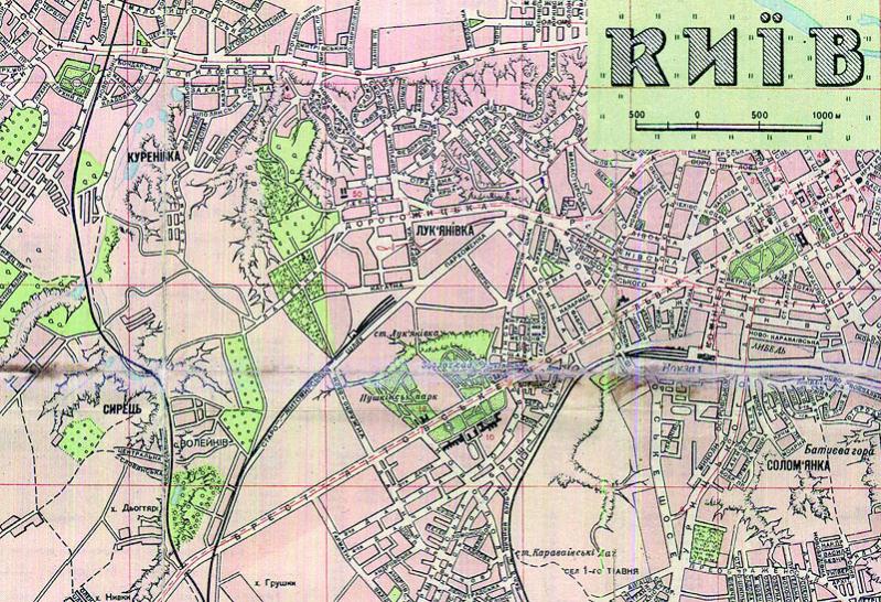 В то время Яр начинался прямо от Дорогожицкой и шел вниз к Куреневке. Ул. Мельникова упиралась в Яр. Транзита не было. Современной О. Телиги тоже не было. Была проселочная дорога на Куреневку, причем поворачивала налево, а не так как сейчас О. Телиги направо.