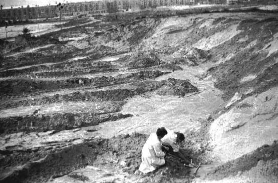 Как можно увидеть на явно послевоенном фото женщины в белых халатах (судмедэксперты?) поднимают останки. Похоже они обнаружены в ходе строительных работ (следы техники на заднем плане).