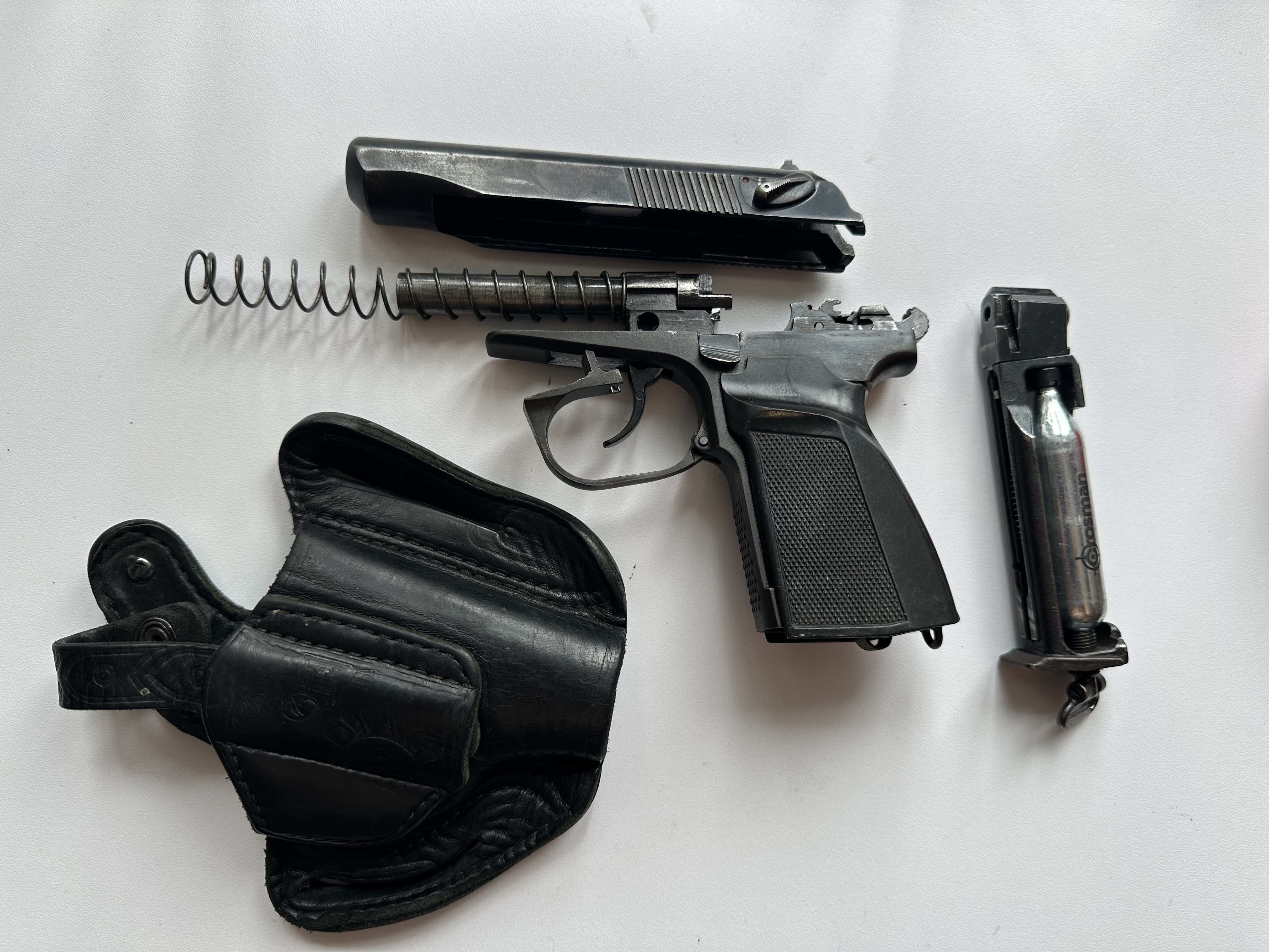 Пневматичний пістолет мр654к. Повністю робочий. Балон тримає (встановлений новий). Рік випуску 2004. Номер на рамці та на затворі співпадає. В ціну входить шкіряна кобура. Ціна - продано
