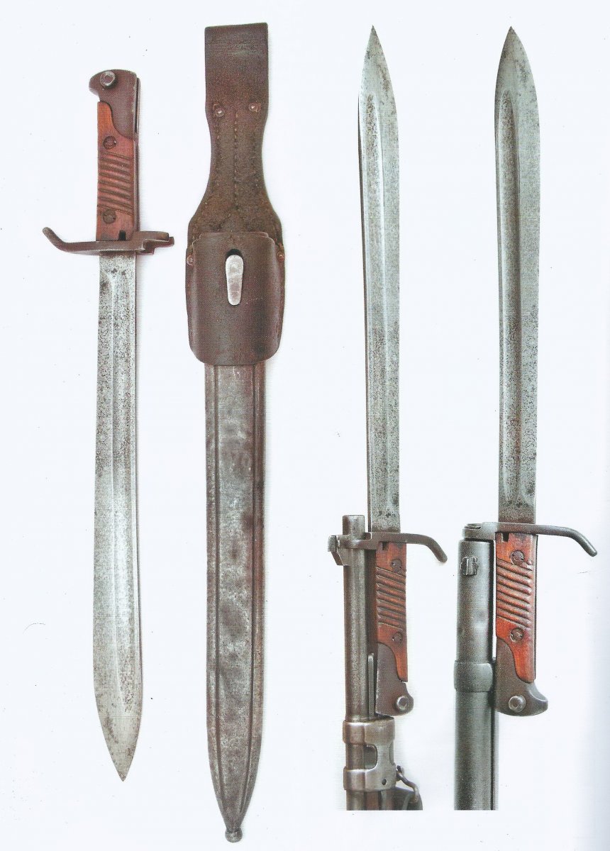Вот, помню я, что где-то уже видел подобные штыки! Так и есть : у Вороновых в книге "Штыки Германии №№№" Отсканировал с примерами примыкания, в большом разрешении (увеличивайте).
