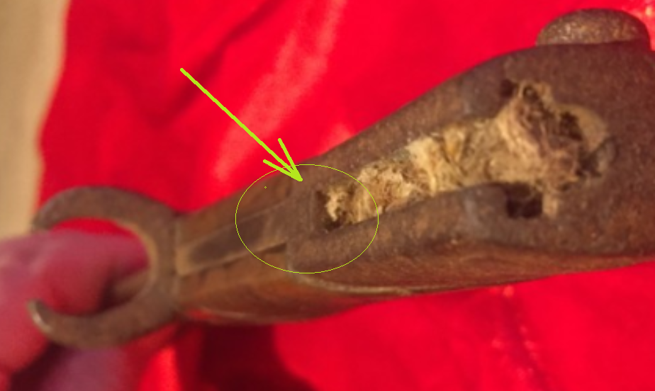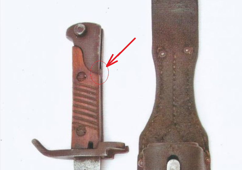 - катастрофически абсурдное решение вопроса; получается им было легче хвостовик отрезать, надеть гарду, прорезать в хвастовике место под клин, вставить клин в прорезь, приварить (темсамым ослабив штык, что видно по фото,,- на одном трещина, на других хвостовик заломан)) - Чем просто изготовить гарду, как у обычного бучера (обхватить клин, две заклёпки и свех делов) и в итоге иметь надёжную "машину". чем думали, остаётся только догадываться. - или это были какие-то ремонтные штыки,,,,???? ------------------------------------------------------------------------------------------------------------------------------------------------ - кстати по сути рукоять на обсуждаемом штыке должен быть короче, чем у обычного бучера, так как по всей вероятности: если обрезанный клин, после вставляли в прорезь, зделанную для клина на его-же хвостовике рукояти, то рукоять теряла в размере, как минимум сантиметр-полтора. На фото хорошо видно, что рукоять визуально короче или???