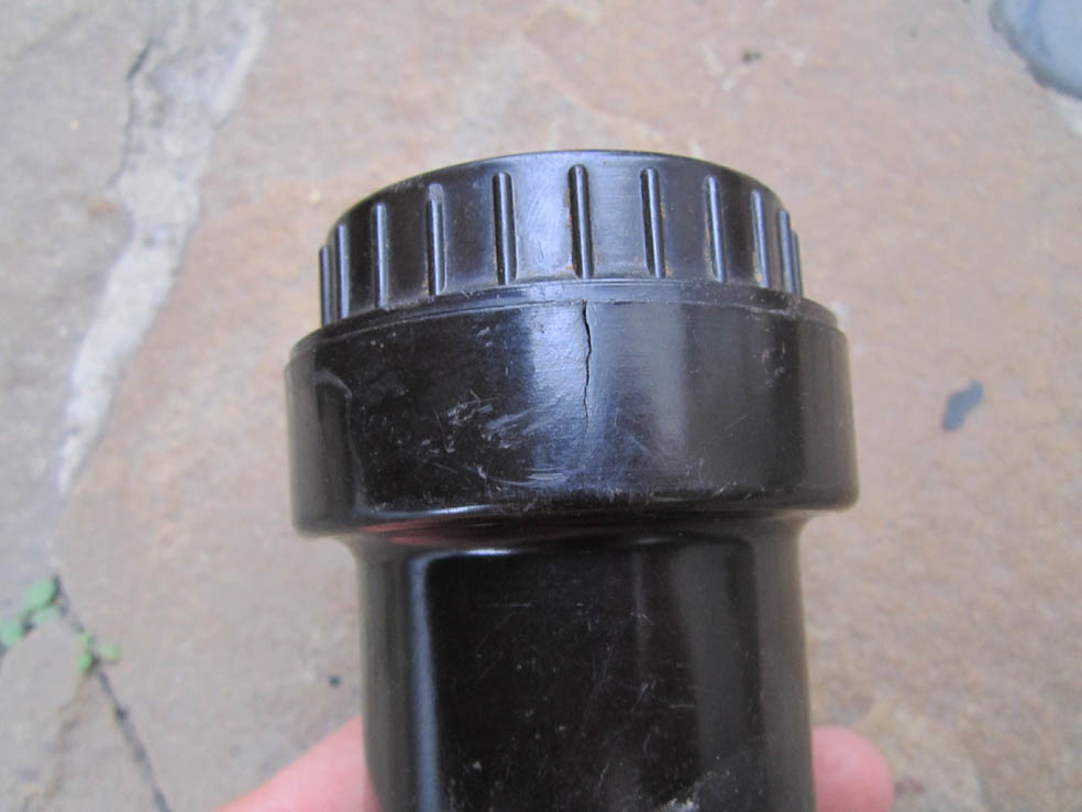 Немецкий бакелитовый футляр, точно не скажу от чего, но похож на футляр от взрывателя. Несмотря на трещины, футляр крепкий - можно использовать! Цена: 120 грн.