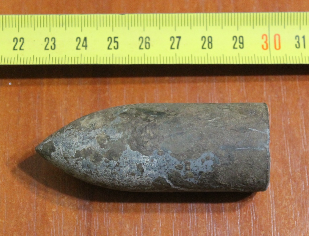 Здравствуйте. Прошу определить предмет. Не магнитный.Диаметр - 27 мм.Длина - 72мм. Ранее находил такой же но кусок предмета цельного, начинки никакой не было. Заранее благодарен за ответы.